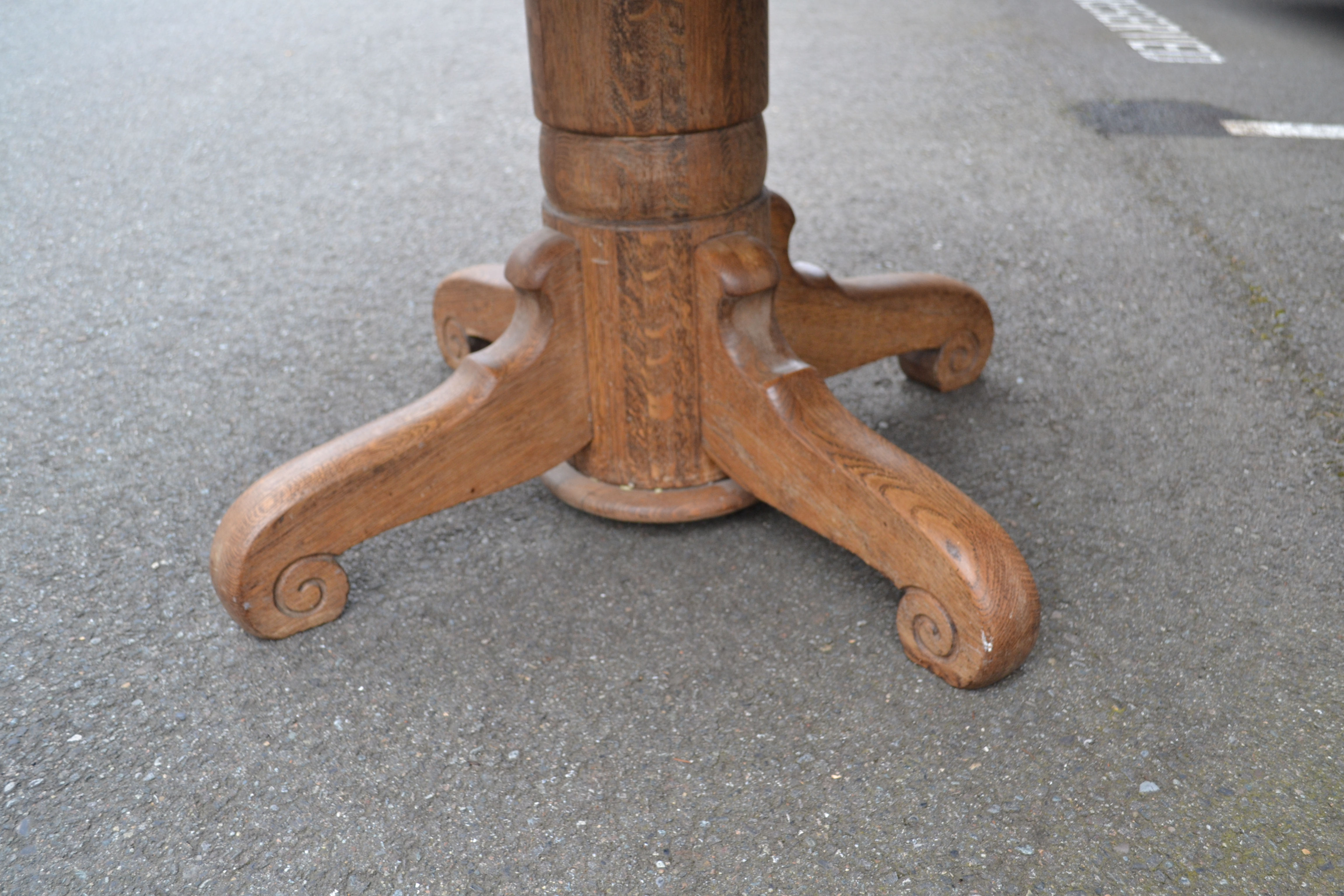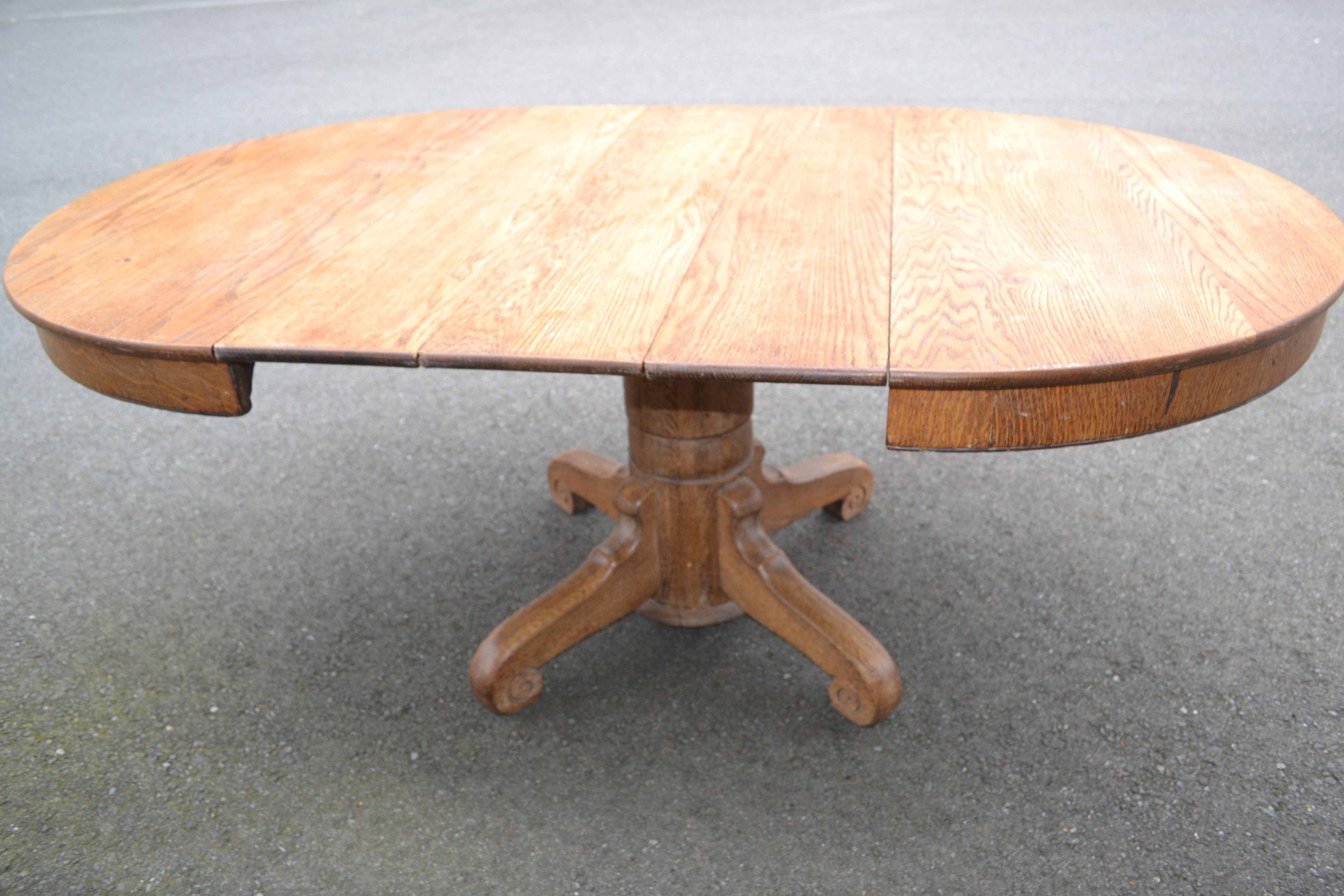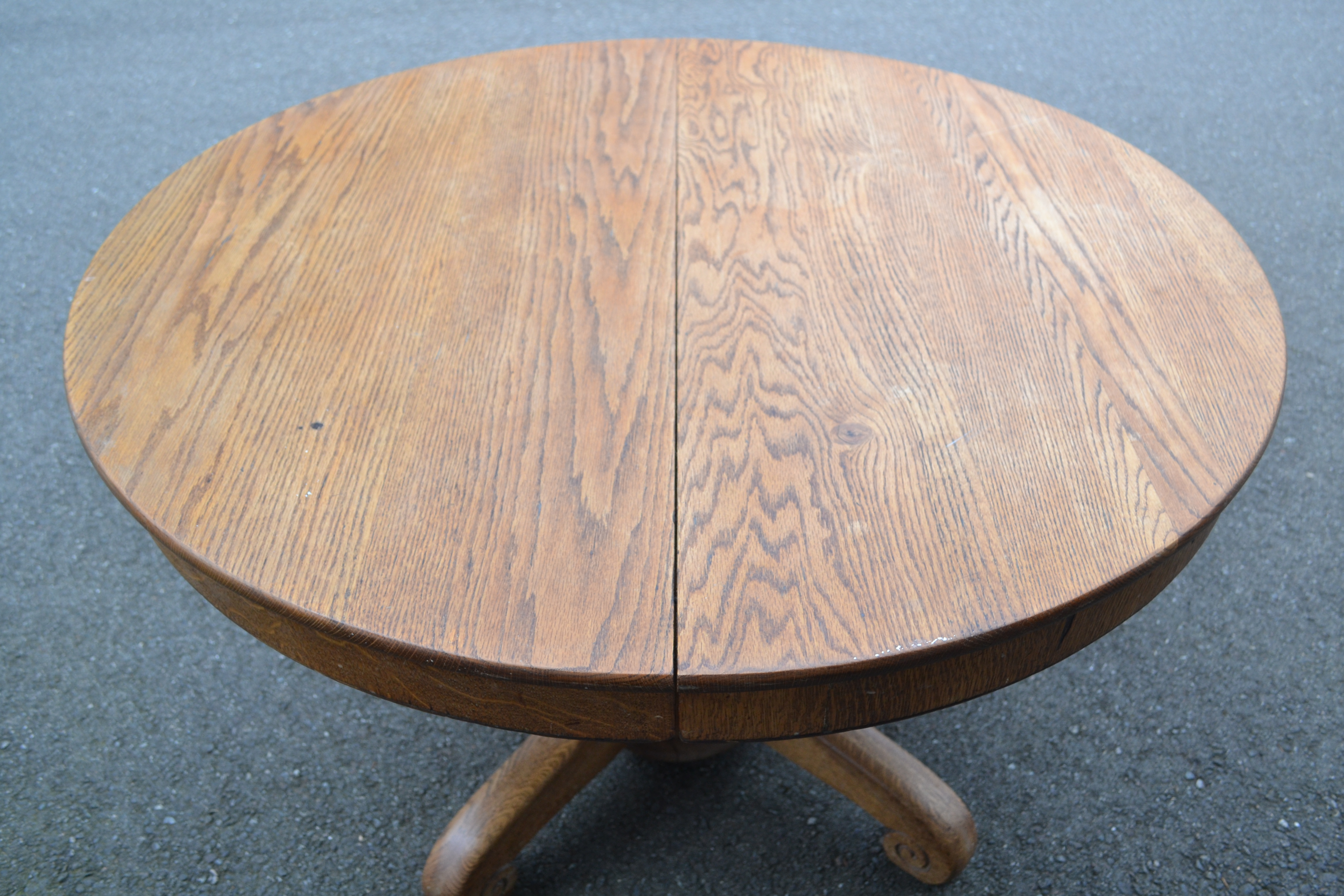 I have a old solid oak pedestal table that has been passed down in my family throughout three generations. I’m looking to sell the table, but have no idea how much to ask for it. I know the table is at least 55 years old, as my mother indicated her parents bought the table (in Appleton, WI) when she was six years old (she is now 61) and she does not believe it was new at the time. I cannot locate any specific year on the table, but there is a marking on the slide that indicates it was made by the Watertown Table Slide Company (it is very faint). The table has three extension leaves. Without the leaves, it seats four and with the leaves it seats at least eight. My mother believes that my grandfather refinished it on at least one occasion in the past. It is in fair condition, meaning that it would likely need some sanding and refinishing. Any ideas on how much this table may be worth? Any guidance is greatly appreciated!