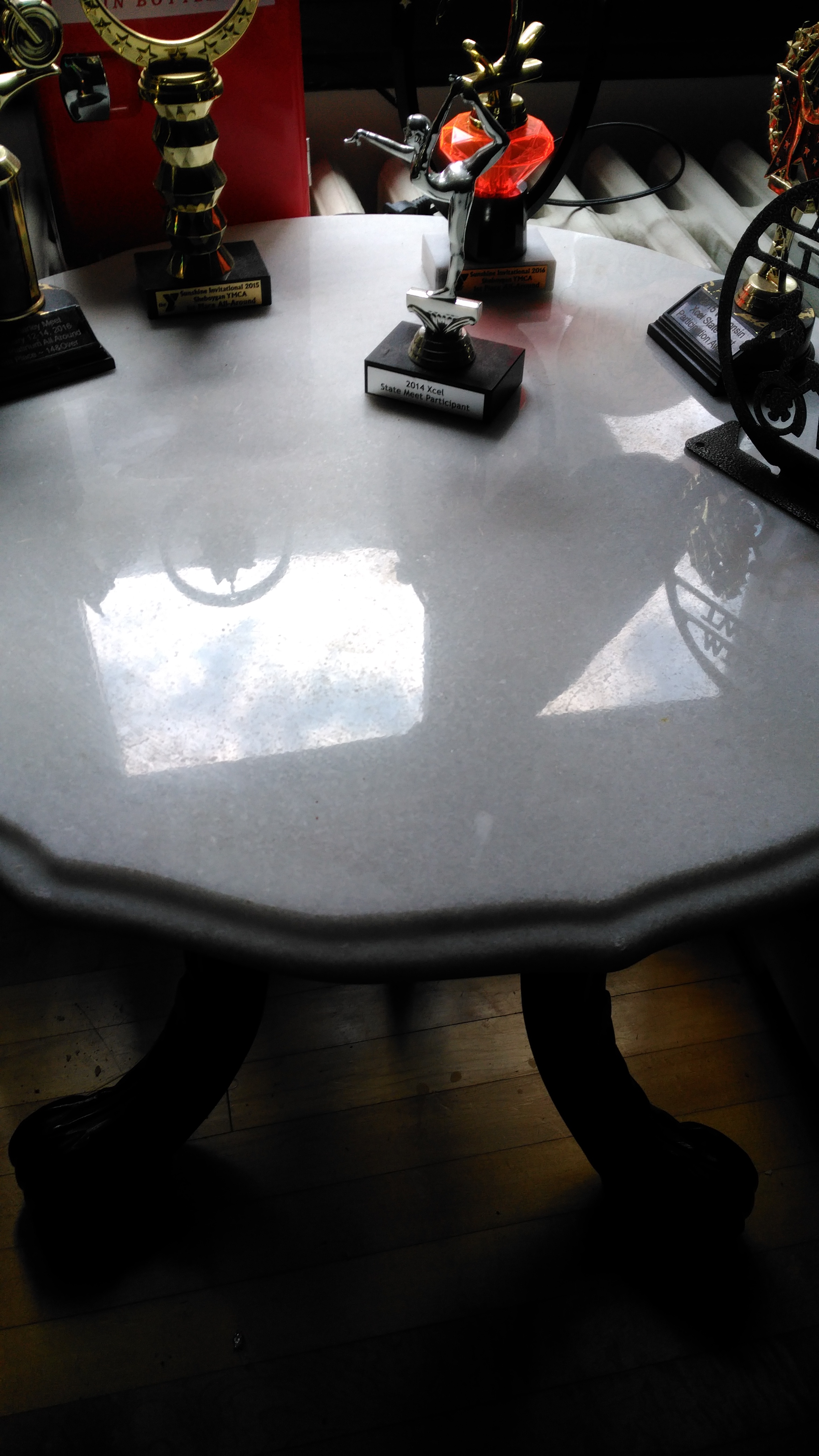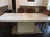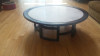 End-25 inches round. Cocktail table-52inches long, 25 inches wide.