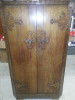 - Dissembles into 6 structural pieces (back plate, 2 hinged side-pieces, base, and top lid (plus 1 clothes rail, 1 long shelf, 4 smaller shelves and 3 drawers, all wood)