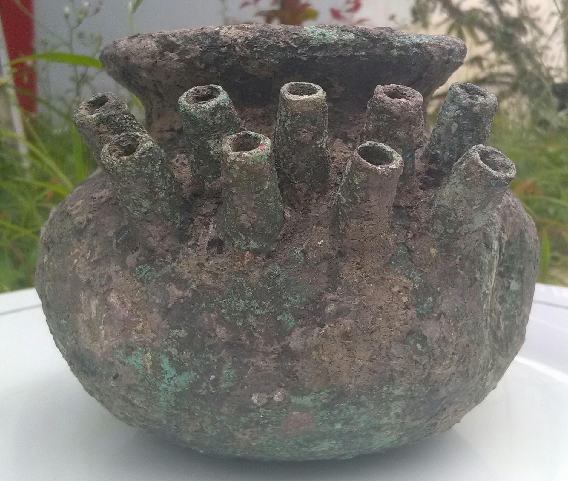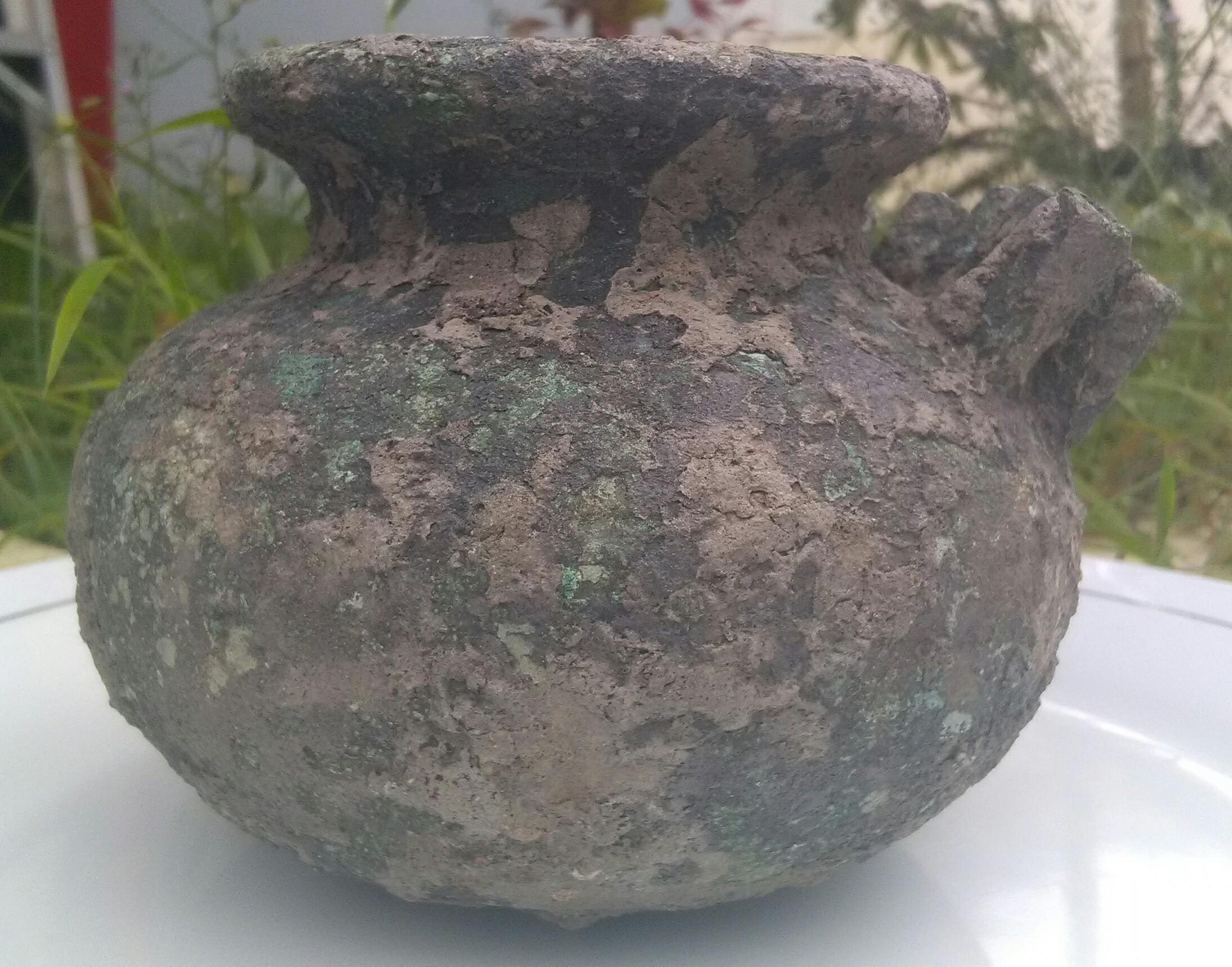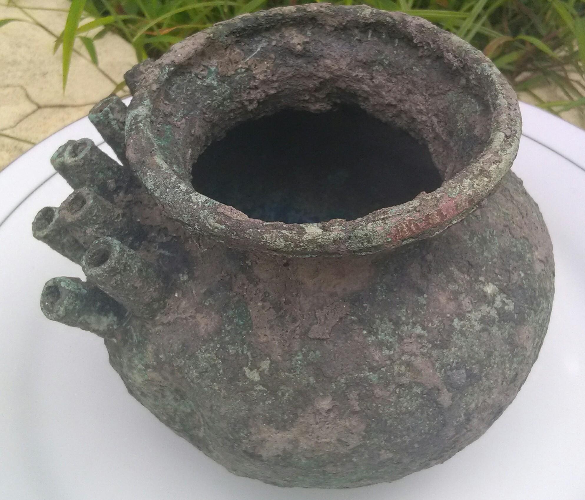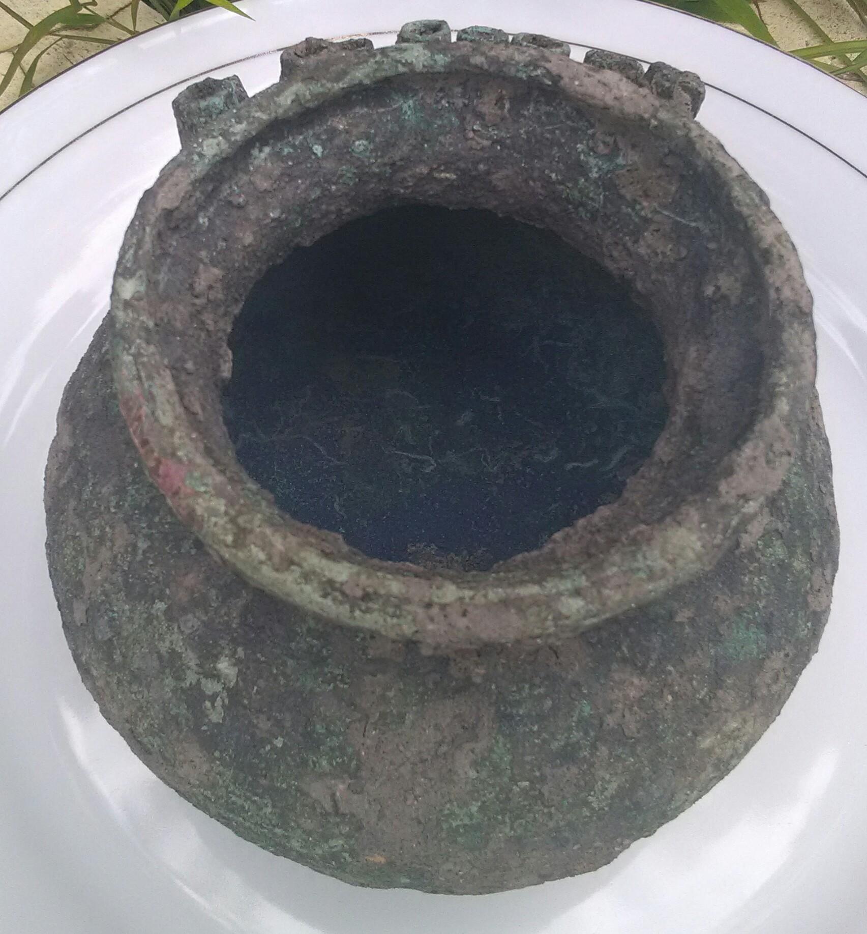 Dear Mr/Mrs, my name is Maya from Indonesia, I have one property from cooper that weight is 1,2 kg, with height 10 cm weight 13 cm on top diameter 8 cm, this property was find from the land at java, from this area is always find ceramic dish, China Koin, etc, in 2014 the Indonesia arkeologi from Yogjakarta study this area, and estimate all property that found in this area is from Song Dinasty until Ming Dinasty, 12 century - 17 Century,and the property that I have is found by my uncle at his land, on the same area that many property is found, this one property is gived to me by my uncle, and I don't know how old and what for in the past, because I never see design like this anywhere, maybe Mr/Mrs can help me, I will attach few picture that I took from my cellphone, I hope soon I can hear from you, Thank You