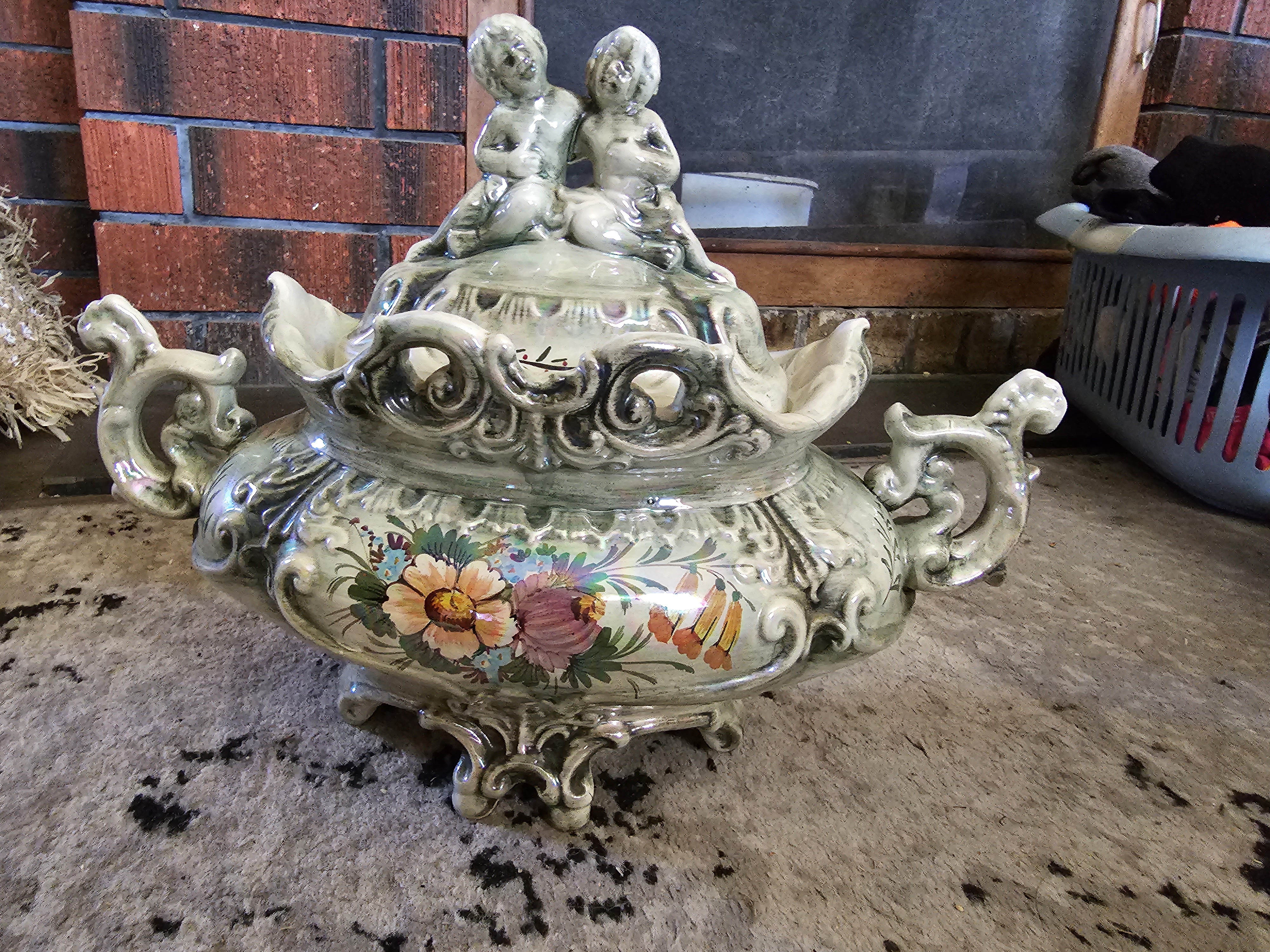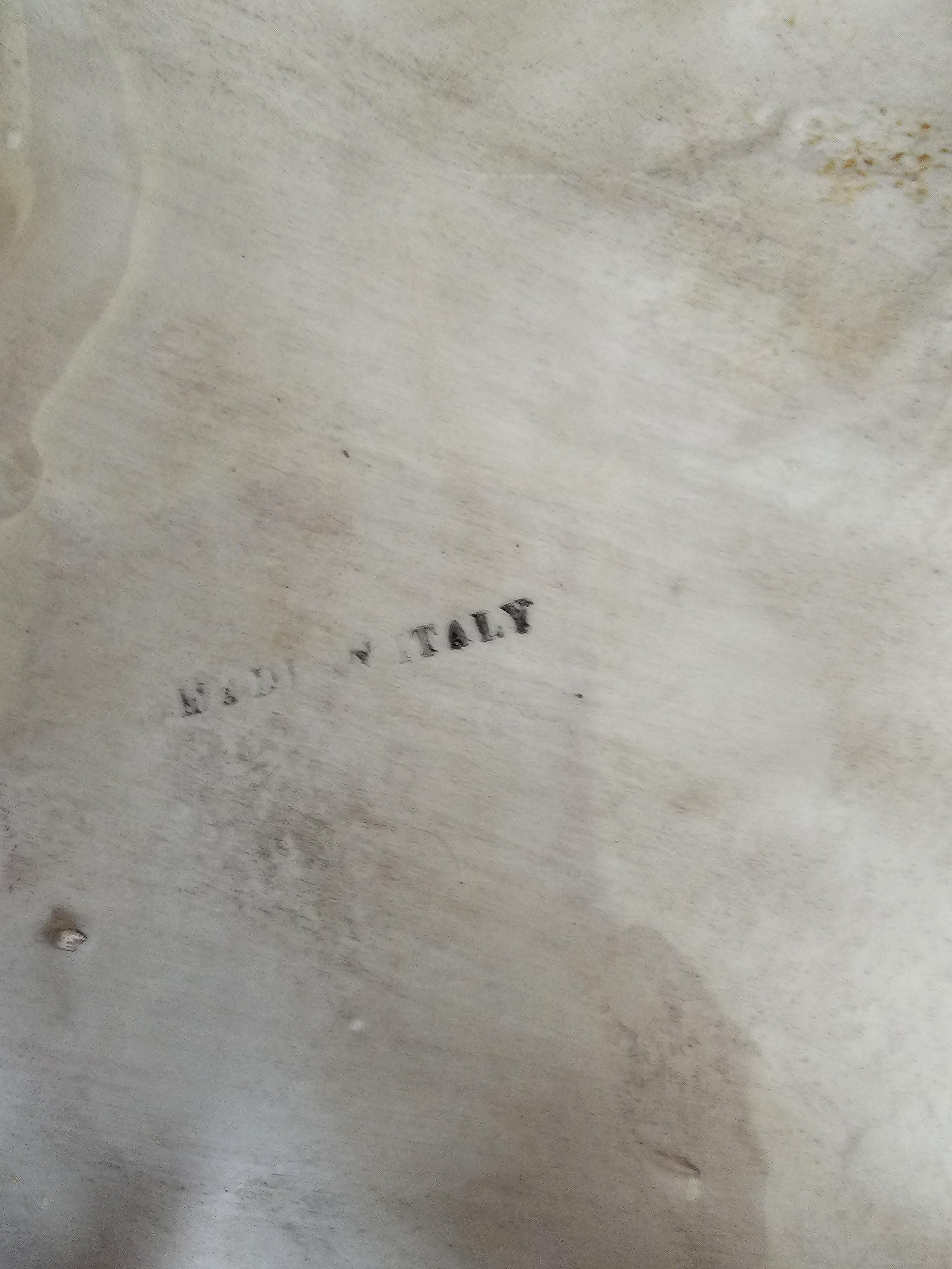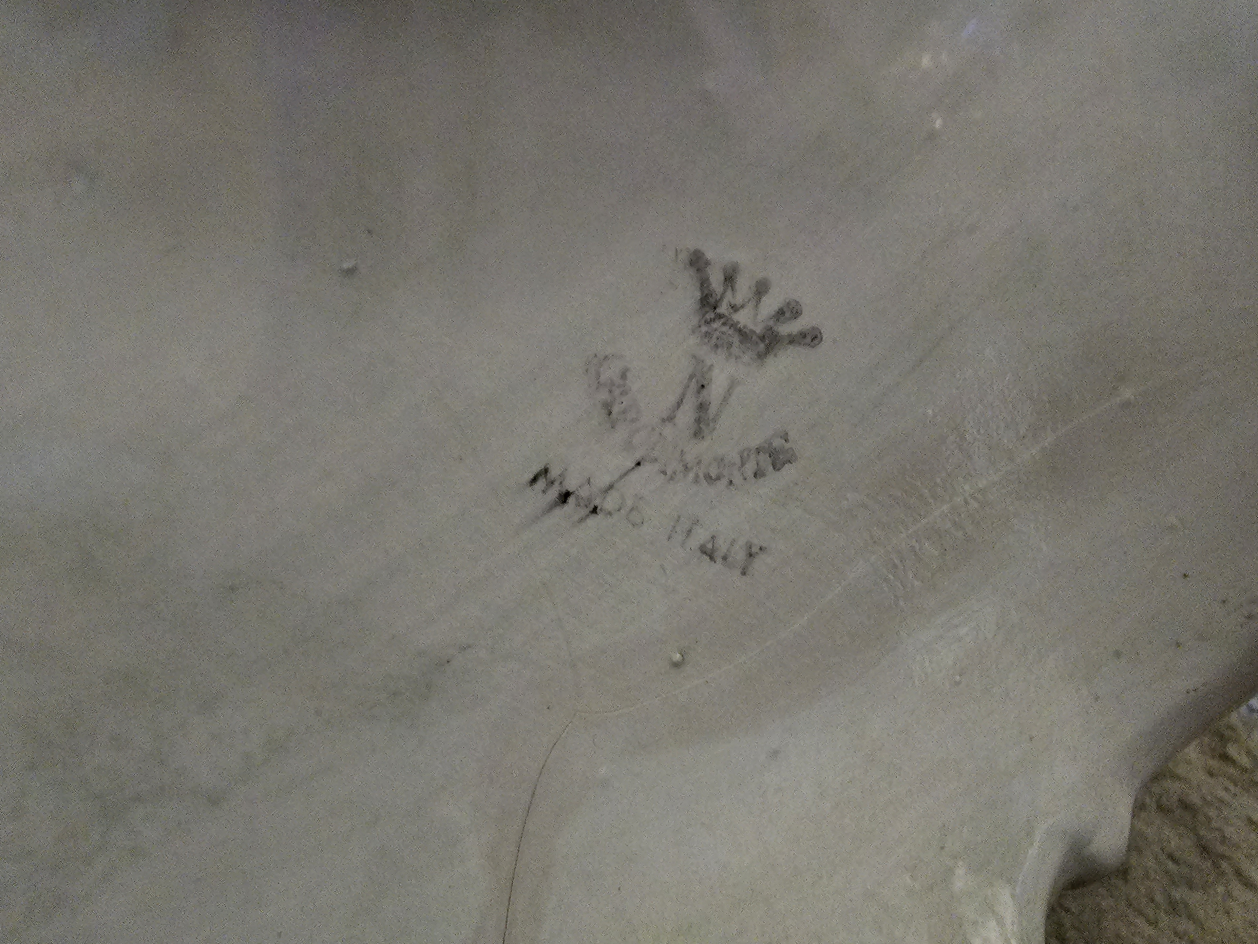 The first one has Capodimonte writtine on it faintly with a n and crown an top. 30 cm x 40