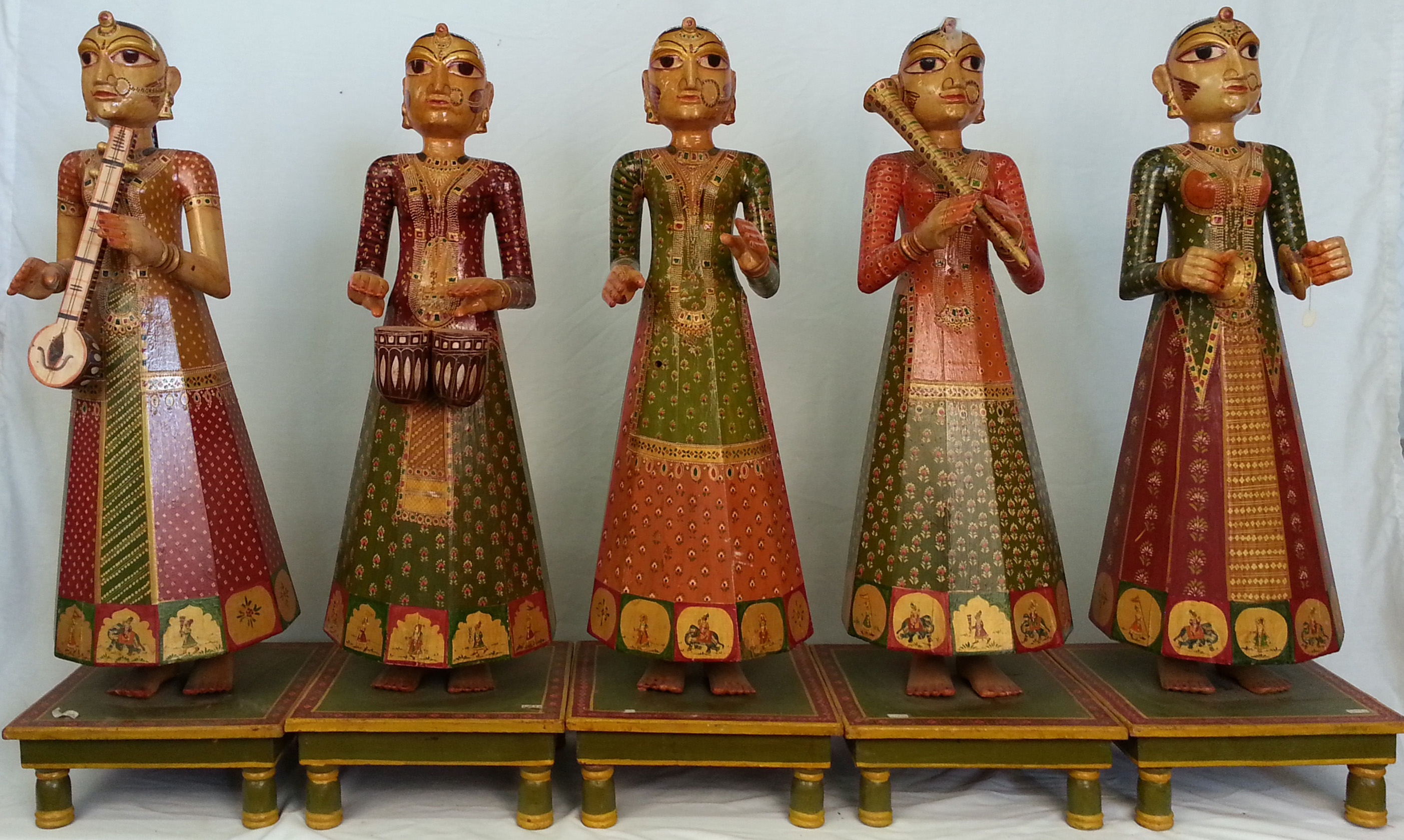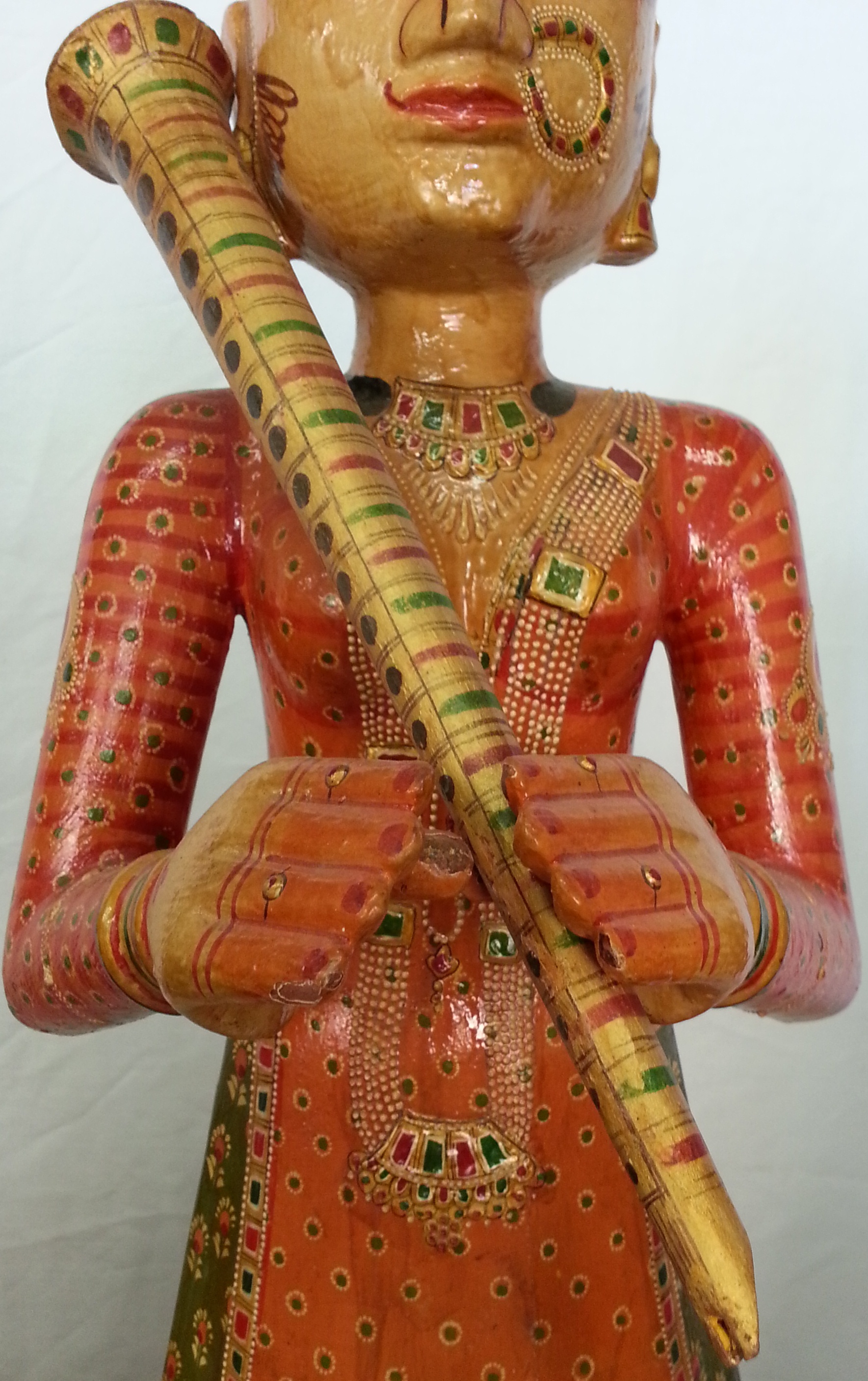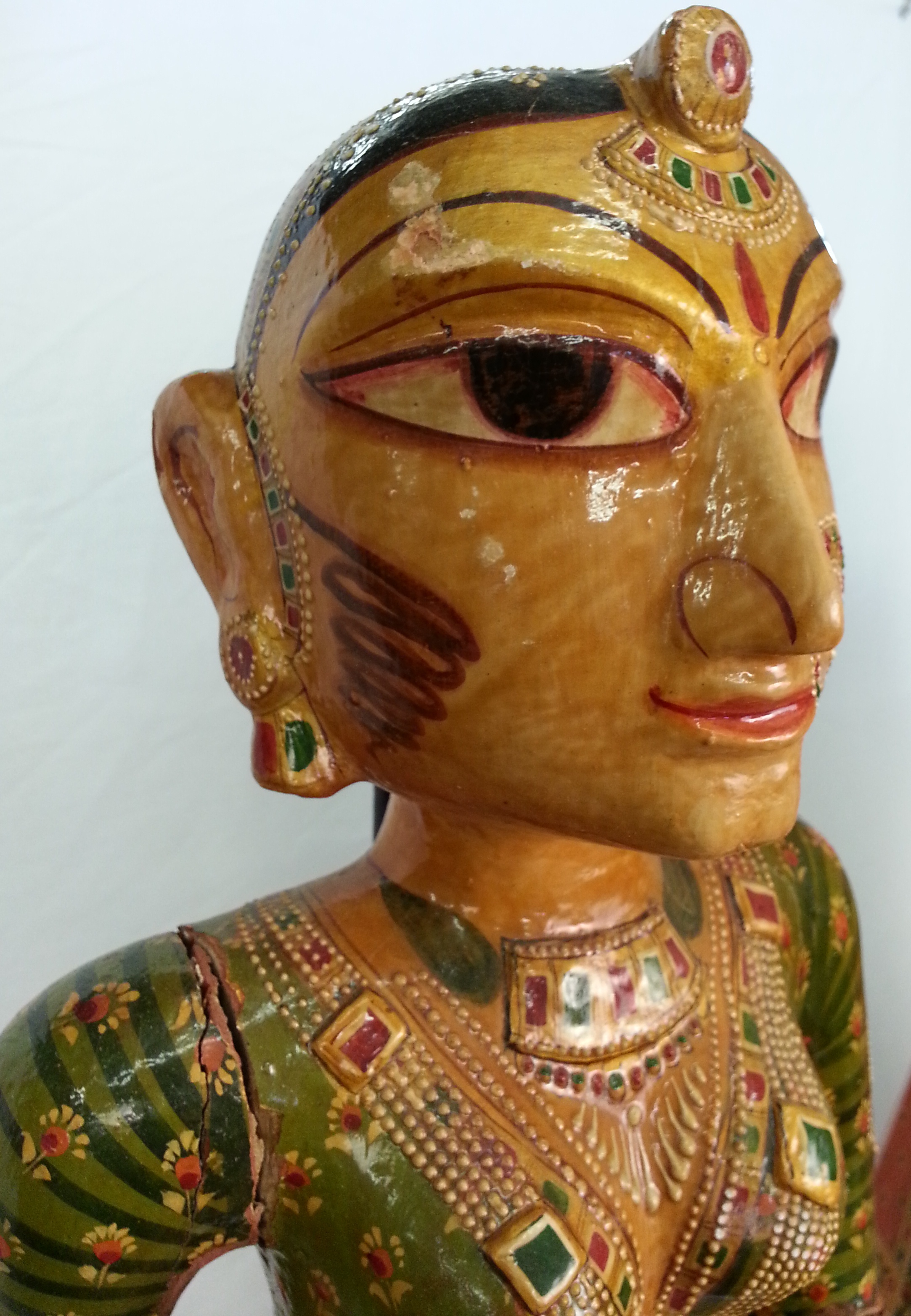 Southeast Asian (Indian) Hand-Carved, Hand-Painted Wooden Statues