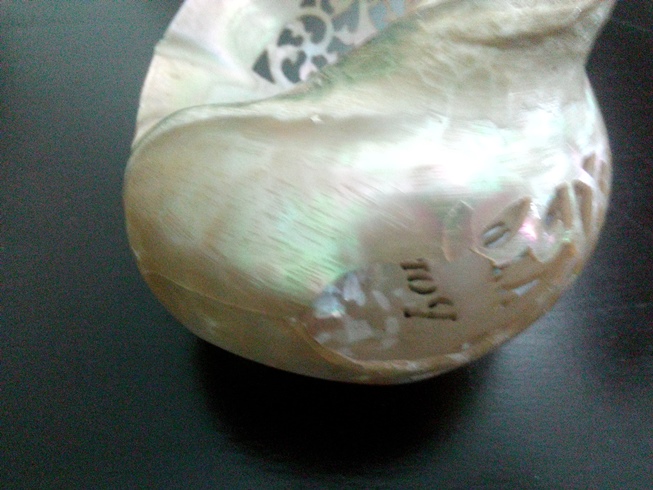 Our family has a sea shell souvenir that is about 5-5 1/2 inches in size and about the same across. It is shaped like a snail shell.