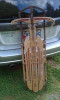 This sled was stored in an attic, it has some signs of use. I imagine that the kid that had it had lots of fun with it. If i had space i would keep as a piece of furniture because the wood still intact. The sled is the model that had the flexible skiis so you can steer it and everything.The metal skiis are a little rusted but nothing that cant be restored you can actually still see the red paint on it...