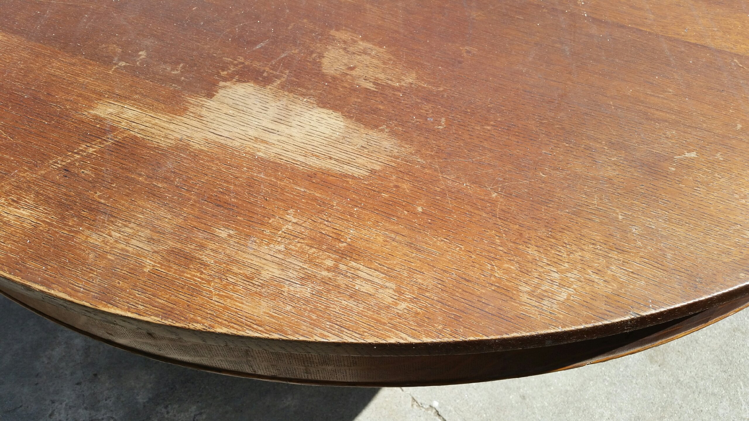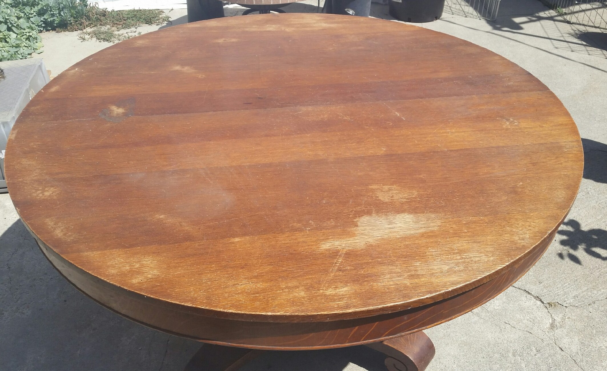 Hello, I'm new to this site and I was looking to get an idea of what this table might be worth in it's current condition. It was my great grandmothers and has been in the basement for at least 30 years. It has 3 unskirted leaves. It has original metal casters. It is in good structrual condition but not good asthetic condition. It would need to be refinished to look really nice. It is stamped with a black '54' on the under side and also has a red stamped image that says licensed April 15, 1898 on the underside. The leaves appear to have metal dowels. The found base has a metal mechanism so that you can seperate the base into 2 pieces (to make it easier to move). Any help/information would be very nice. Thank you in advance!