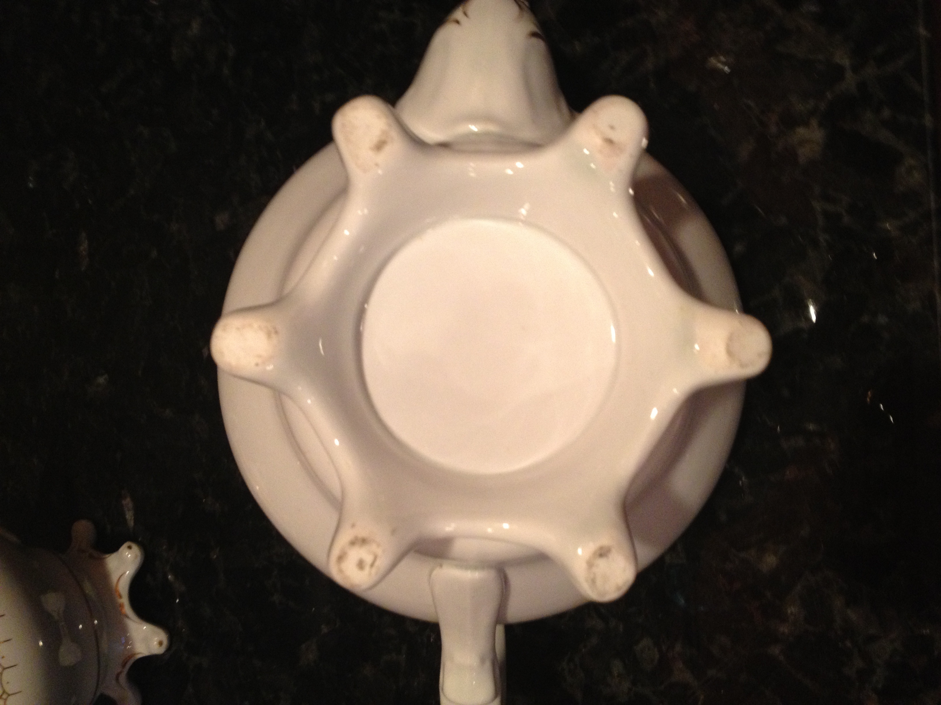 There are no markings on the bottom of anything except on a few that have numbers only. You can see it in the photos.