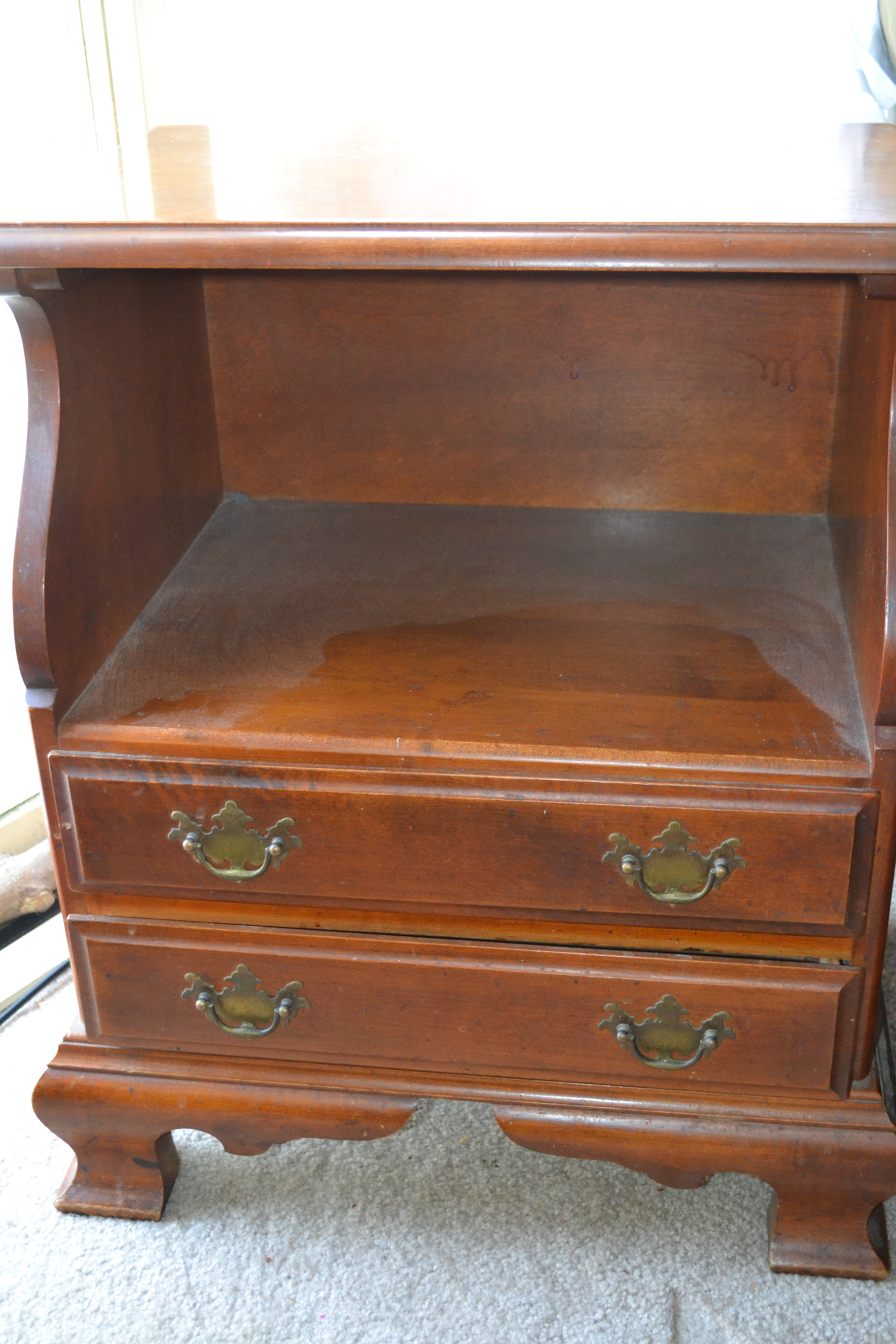 I have 2 Sprague and Carleton night stands. They have 2 drawers on bottom and is open above the top drawer.Also have a matching desk.Interestd in what they are worth especially the night stands since I can't seem to find them when I run a search on them.