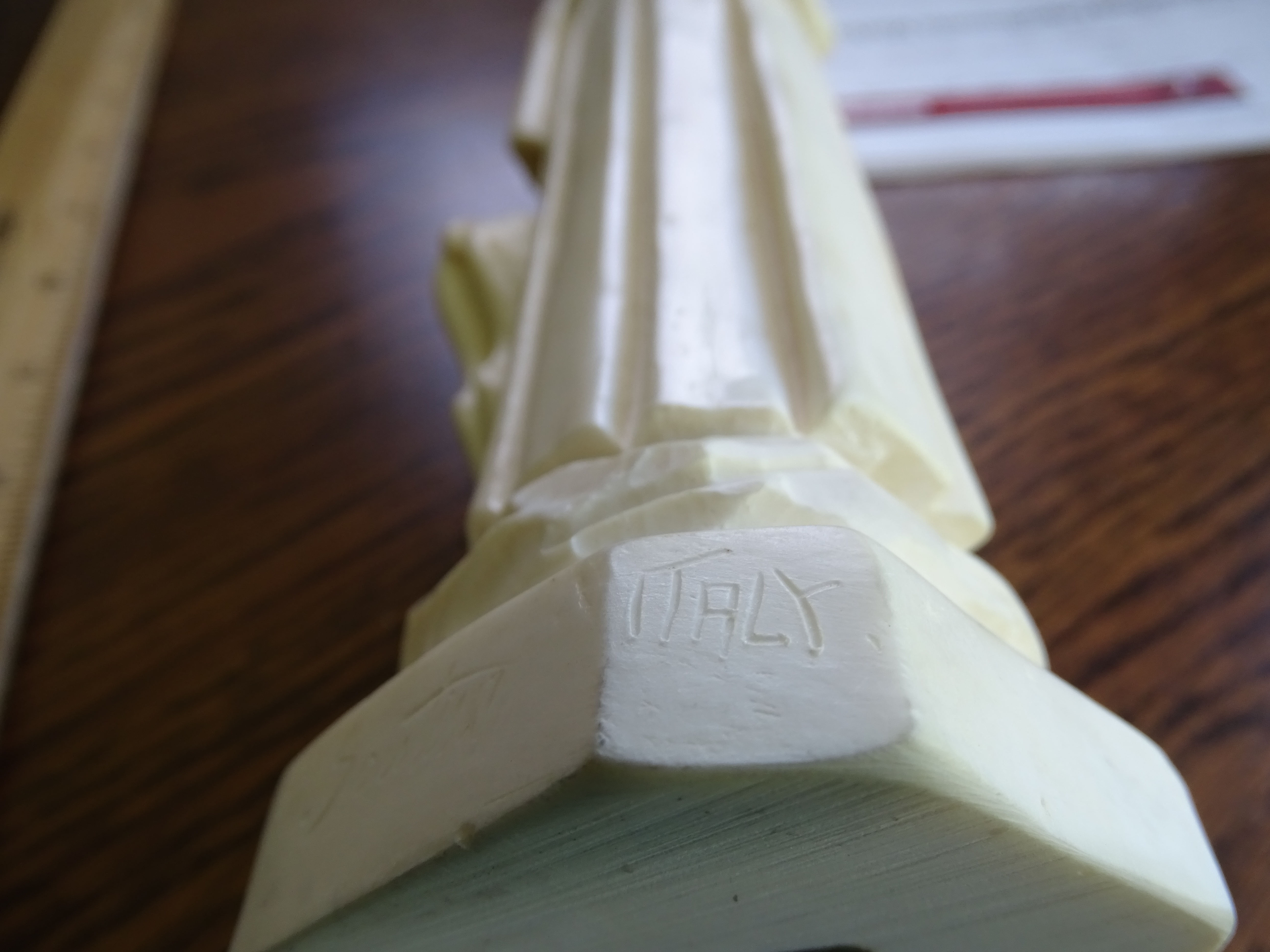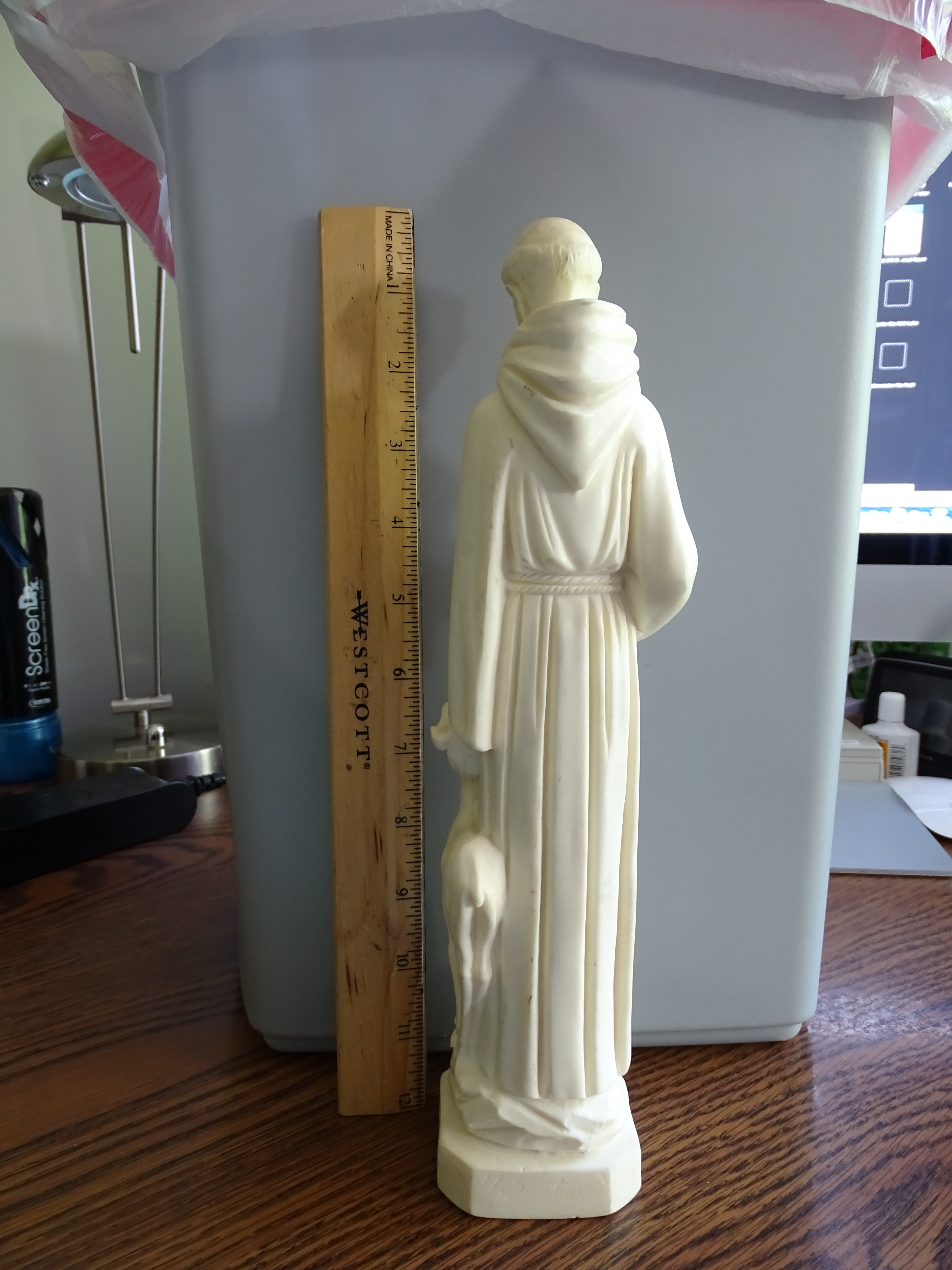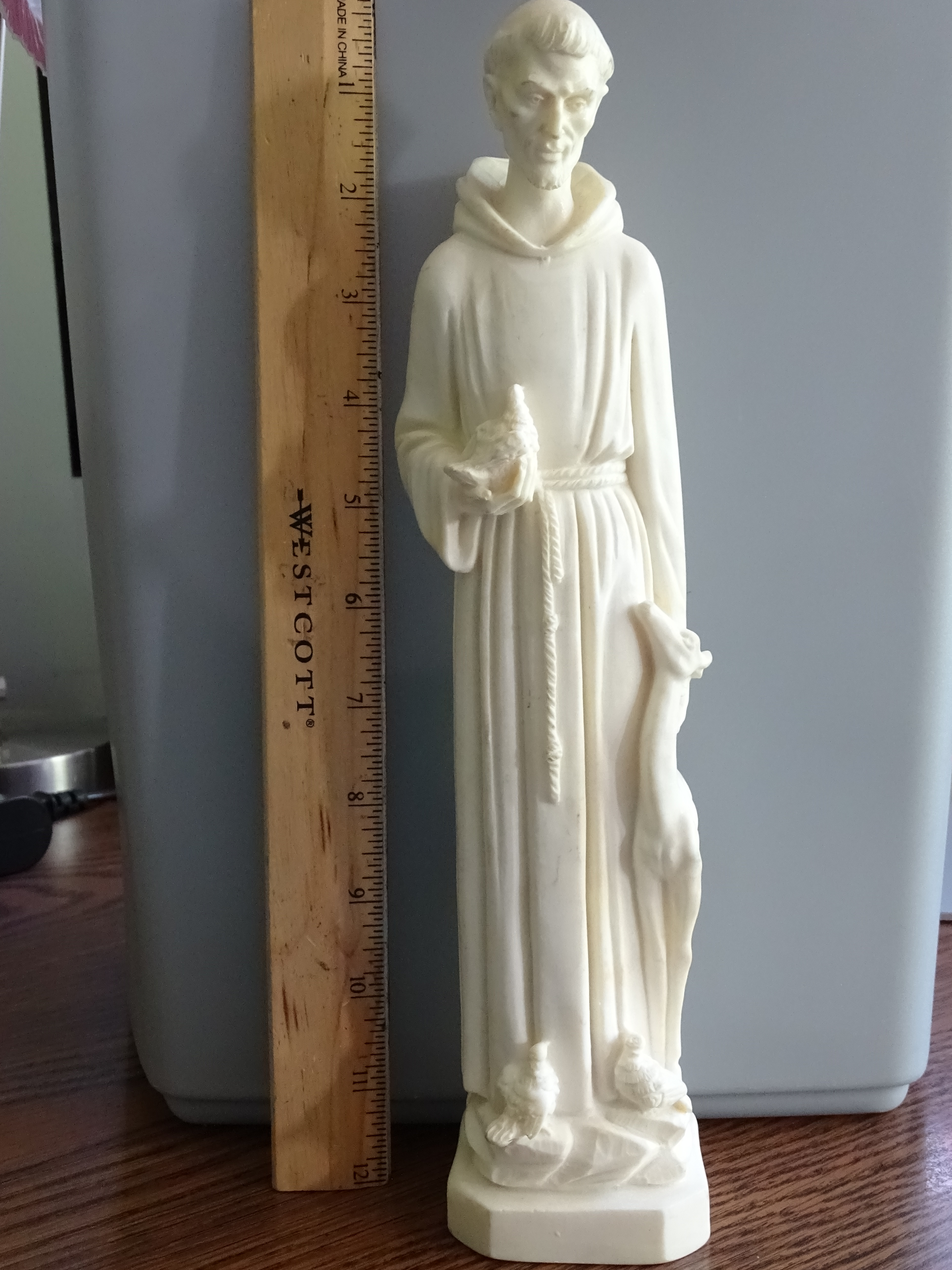 12 inch statue of St Francis. Signed on side by Santini and also engraved on side Italy. Classic Figure stamp on bottom. No chips or marks.