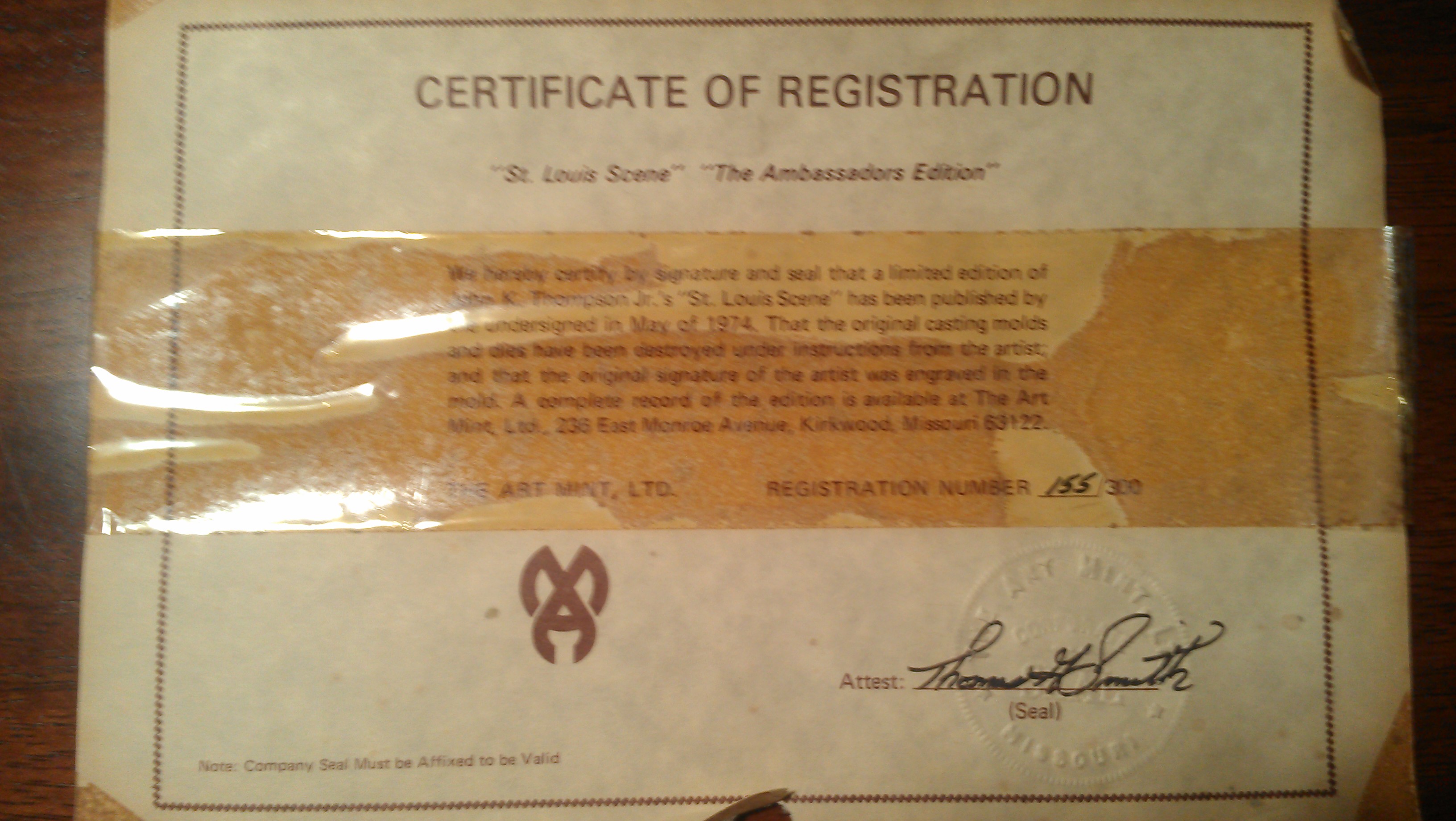 Certificate of Registration from The Art Mint, Ltd is included.