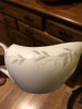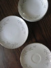 I have a set of St Regis Fine China Japan 101. They have a dainty green stem and leaf pattern with small white flowers and buds, and they're rimmed in silver.