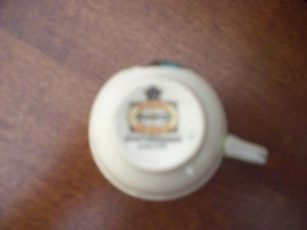 stamped on the bottom of the cup Royal Crown Myotts and then Staffordshire England. Painted with pink flower