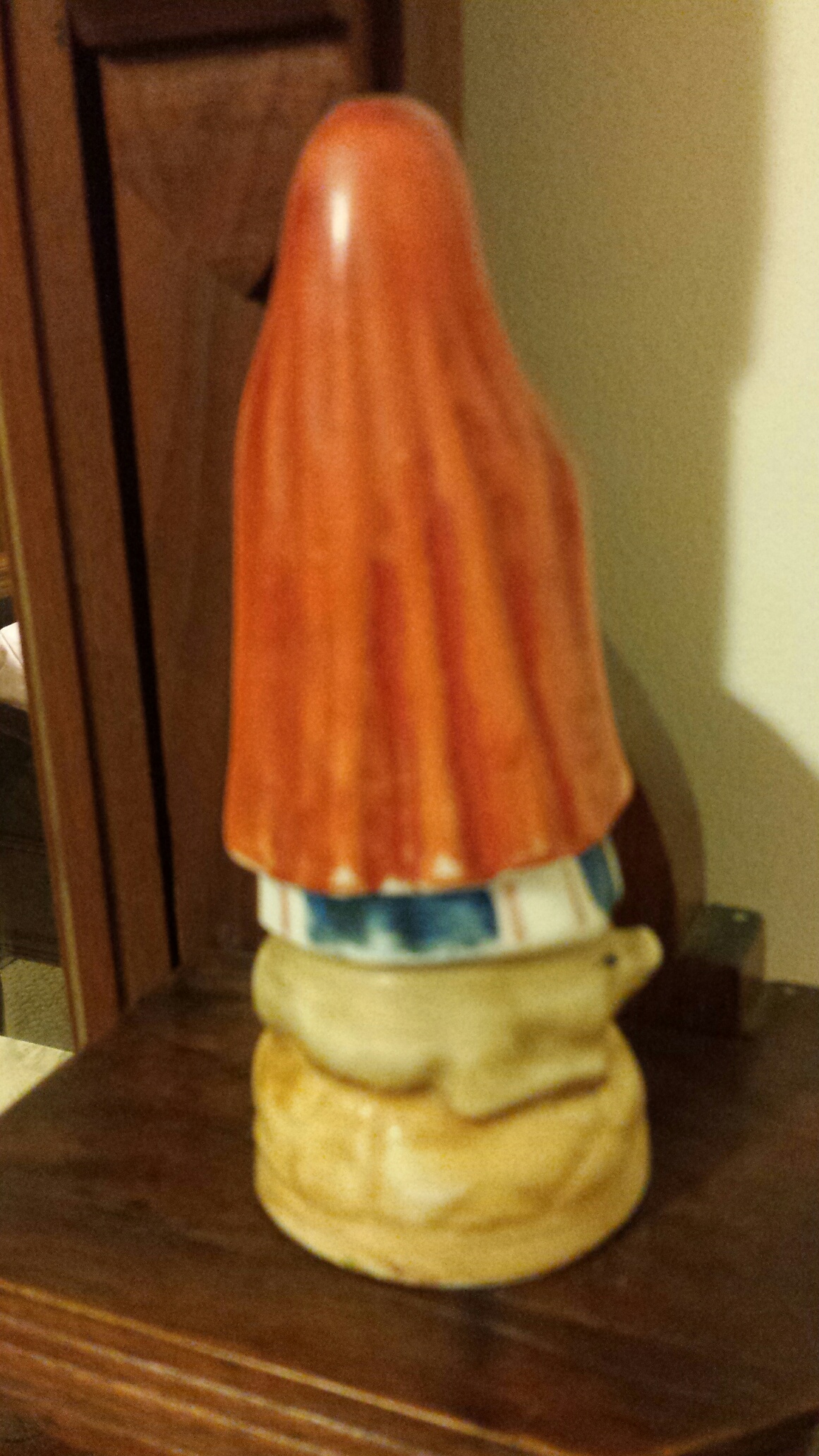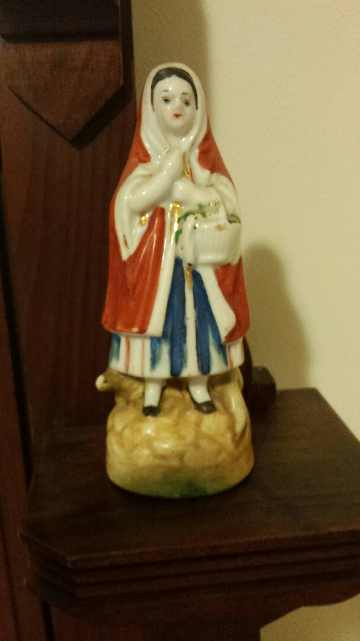 This figure is about six inches tall and does not have a glossy finish. It was given to me 55 years ago as an antique and as as a Stafforshire Little Red Riding Hood. Underneath there is the capital letter "I" and the number "39" but no other marks than these. The wolf if curled up under her feet and they show no interest in each other.