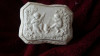 This is a trinket box that looks like a china hutch. The part which is the cabinet is the base and the top is the open back shelves containing 6 serving peices (1 pitcher, 1 tea pot, 1 bottle, 2 glasses and 1 tea cup). There is no detailed painting to this piece, it is glazed to look like blue marble and the finish is in excellent condition with a very high shine. There are no cracks or chips on the entire piece and it is in pristine condition. The date that is inscribed on the lid looks to be 1824 but on very close inspection it also reads as 1324. The original tag from when my Grandmother purchased it is still on the back and simply reads " Staffordshire Trinket Box". I have done some research on it but can't find anything that looks like it. It truely is a beautiful little pice.