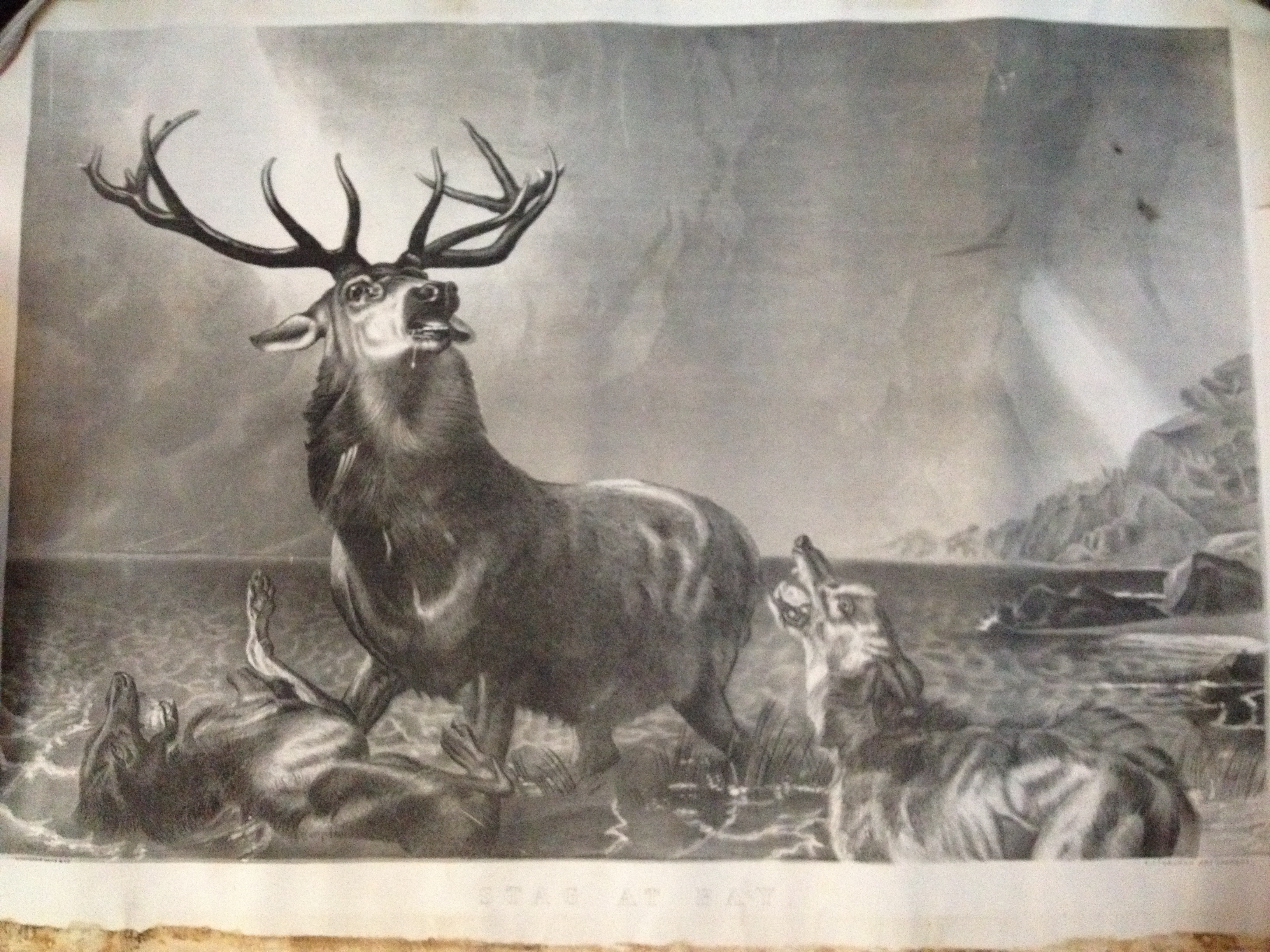 I found a Stag at Bay print behind a picture in an old frame I got years ago at a thrift shop. I saved the print but am now cleaning out and wondered if it had any value. I was planning to donate it.