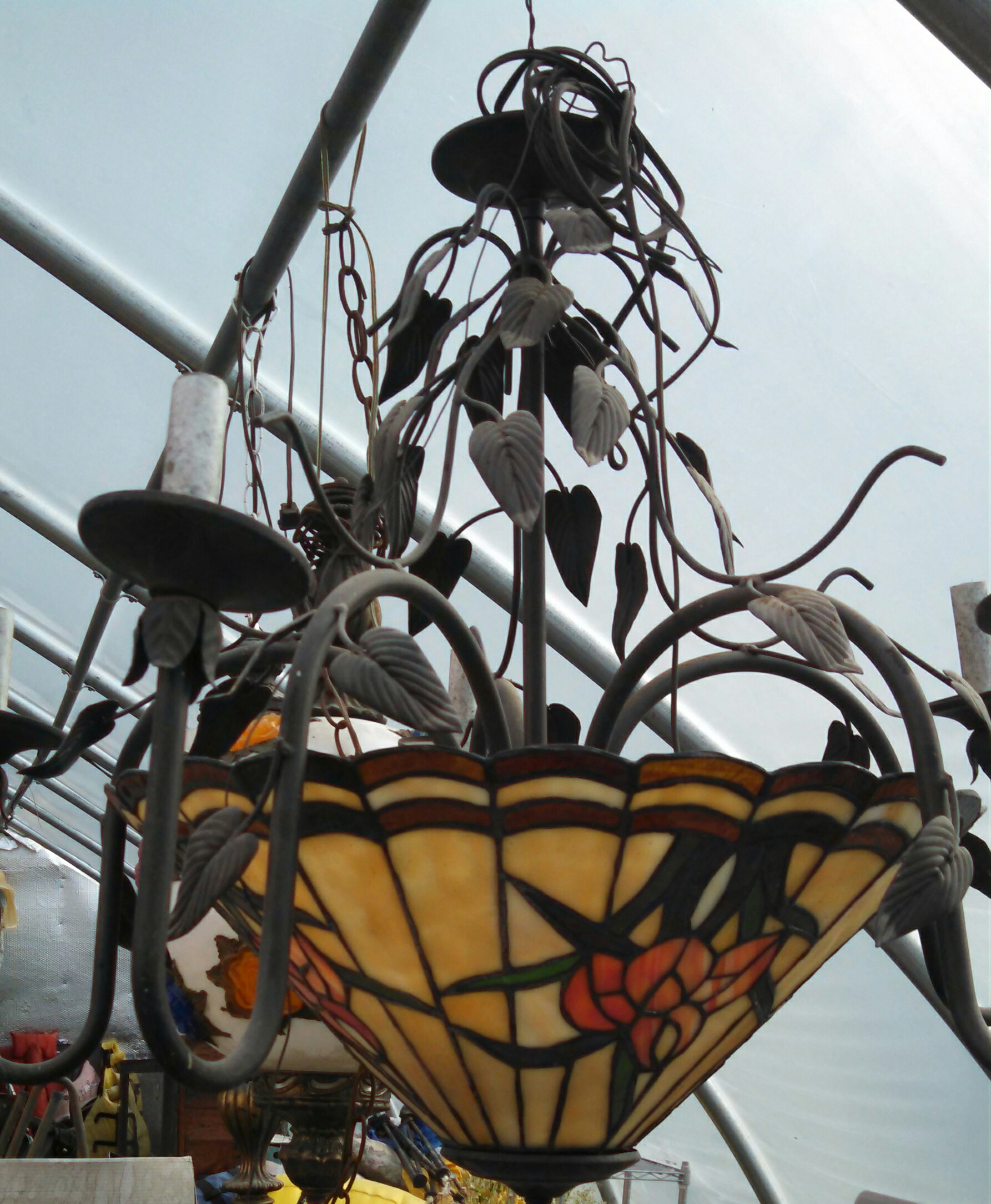 I was gifted this lamp. It was not kept in good conditions. I was afraid to clean it and possibly hurt it. I believe it needs new wiring. This lamp appears old and is very well done stained glass. It was once hung in a Jewish hotel that is now a residence. I am not sure because of this if it is American made or from another country . I do not know how to find out who made it and how to market it . Any ideas are welcome. I am close to NYC .USA but do not know how to proceed