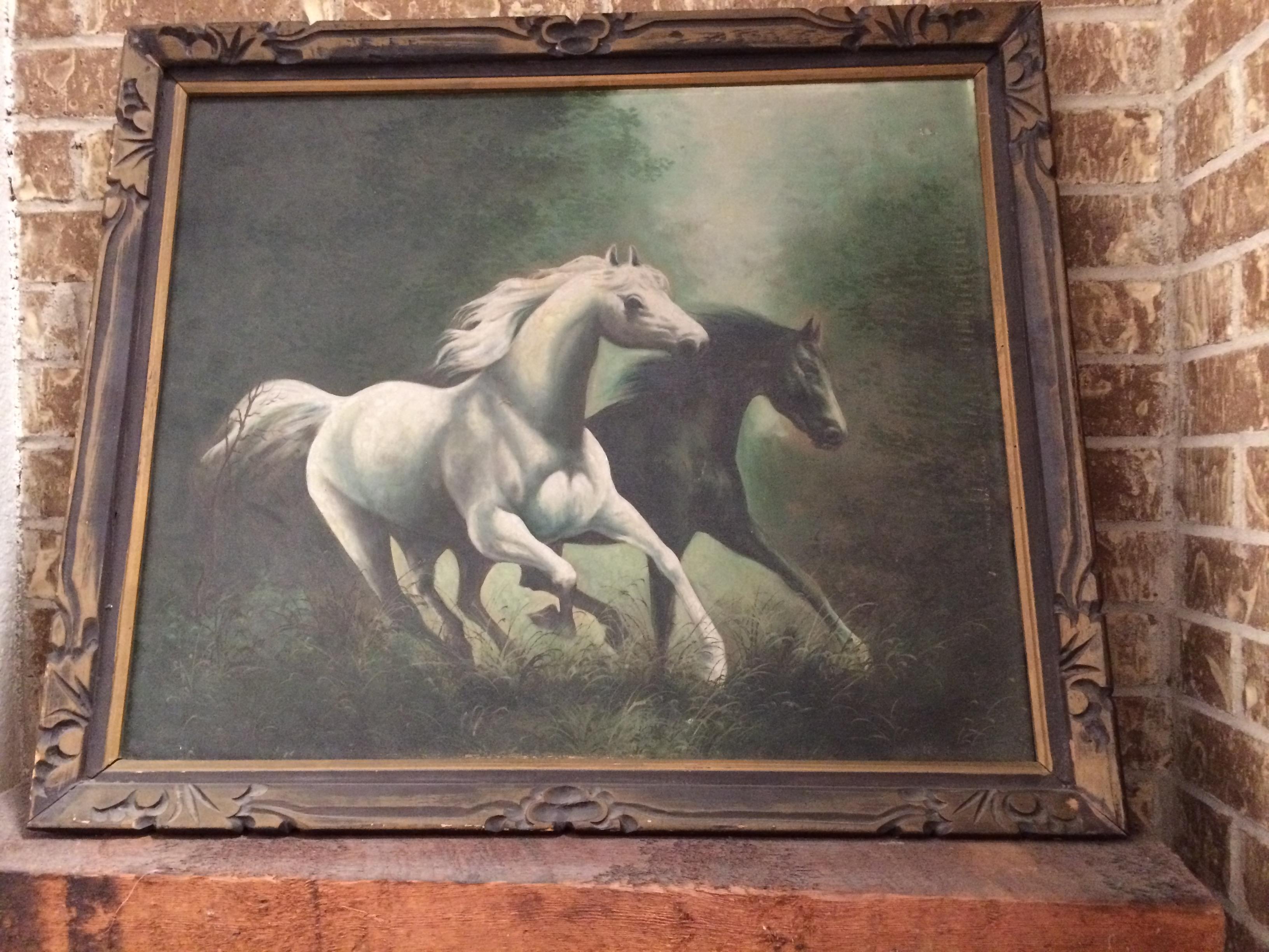 Black and White Stallion Canvas Painting with Handcrafted Wooden Frame
