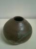 This heavy hand made vase is rounded bulbous shape with a narrow flat base. Blue glass with a yellow spiral twist signed on the bottom. Height is 5.52inches and diameter is 5.71inches. This is in excellent condition with no cracks or chips.