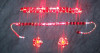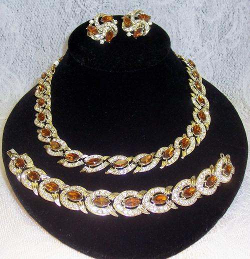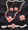 necklace adjustable 13" to 16", bracelet 7 1/4" long, earings are clip with screwback adjustment and 3/4" wide
