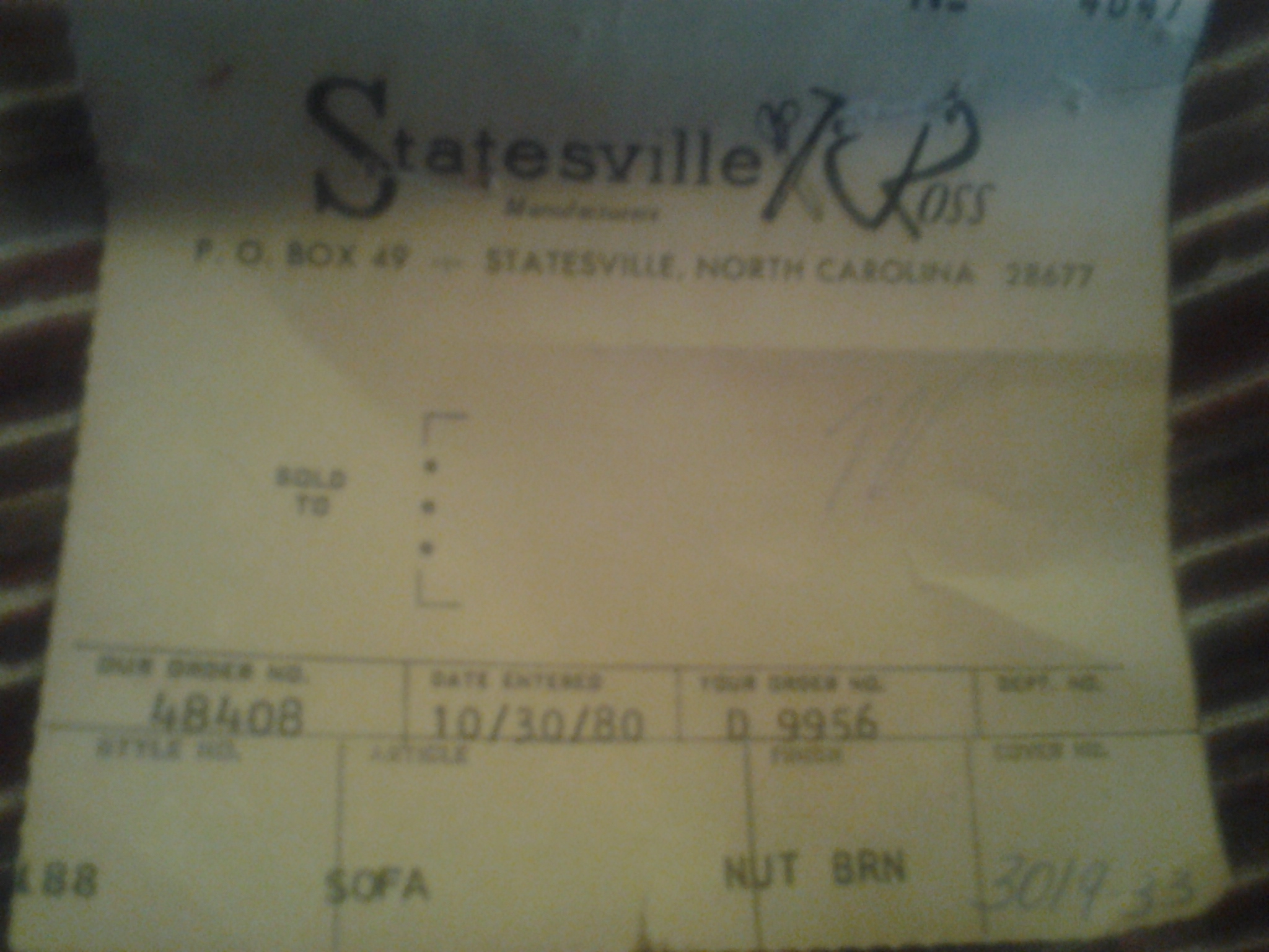 Well I just bought this couch. Its in almost perfect condition. Very beautiful. I noticed the tag says shipped 10-30-1980 on it. Just want to know if it has any value.