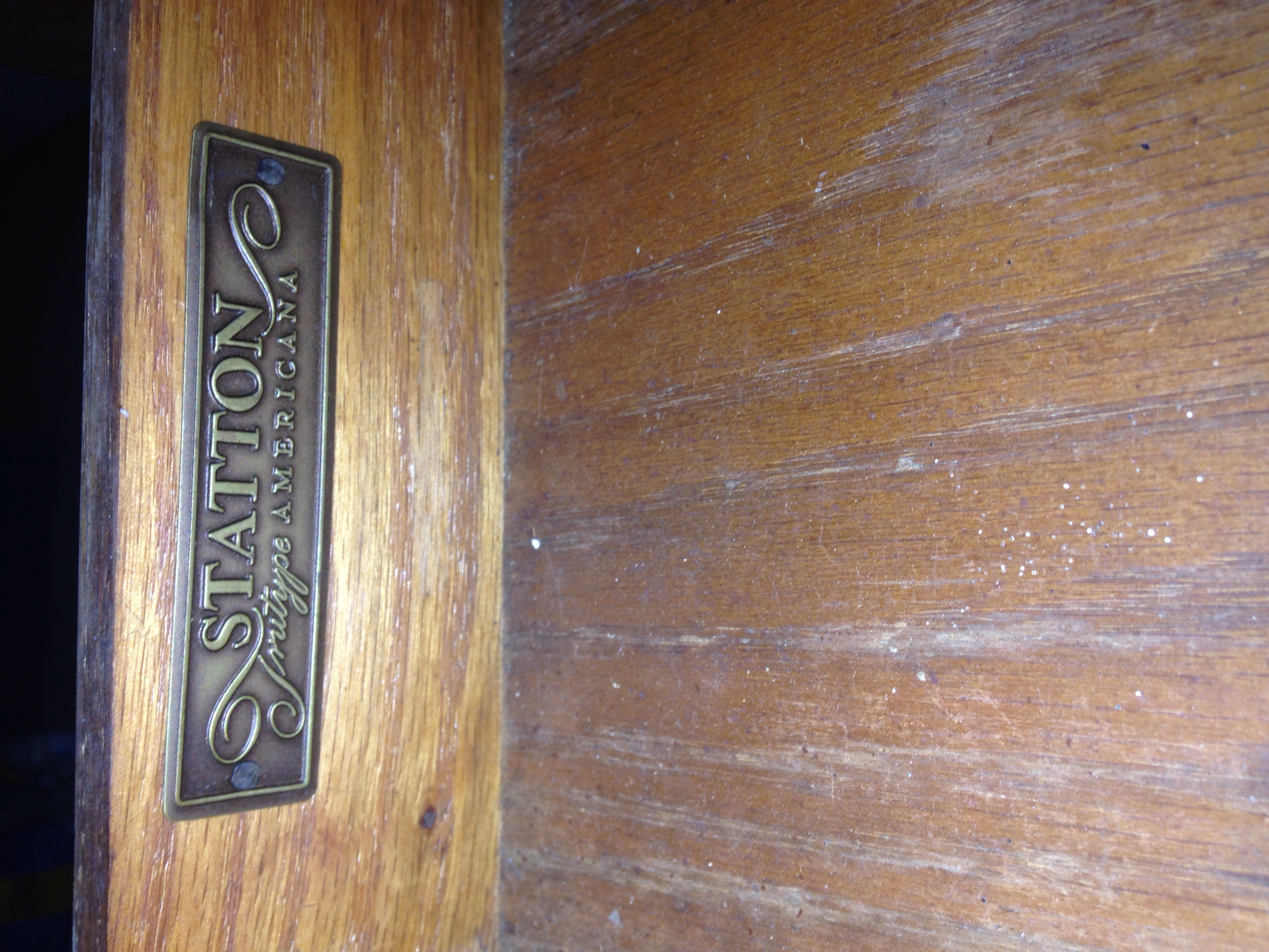 This nightstand is 2ft 3.5in tall and 1ft 7.5in wide. The two drawes curve inward and inside the top drawer a metal tag reads "STATTON Trutype AMERICANA" on the left side. Each drawer has a keyhole. I haven't found anything like it online. Im hoping it's not a knockoff. Please help any information on the piece is greatly appreciated.