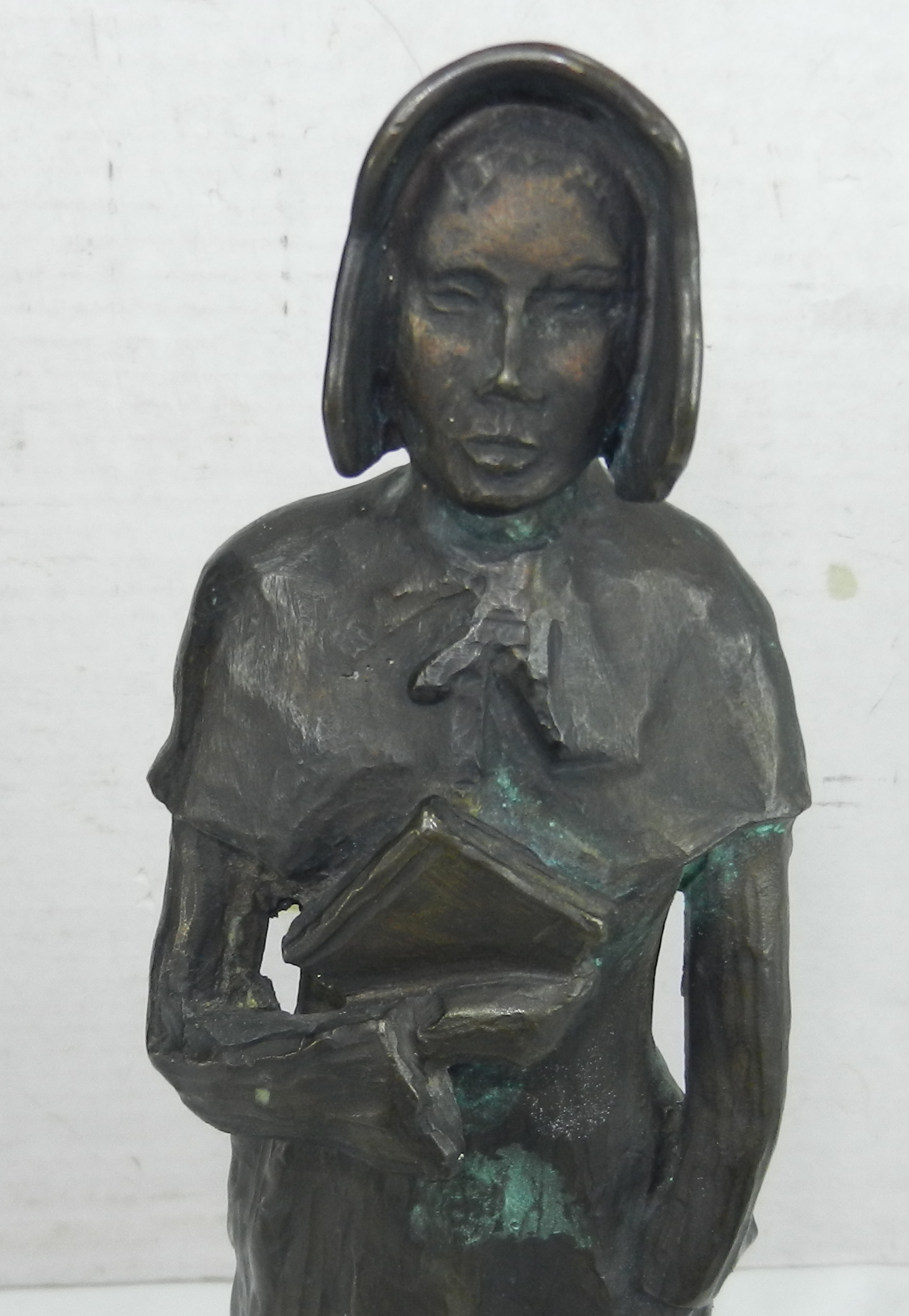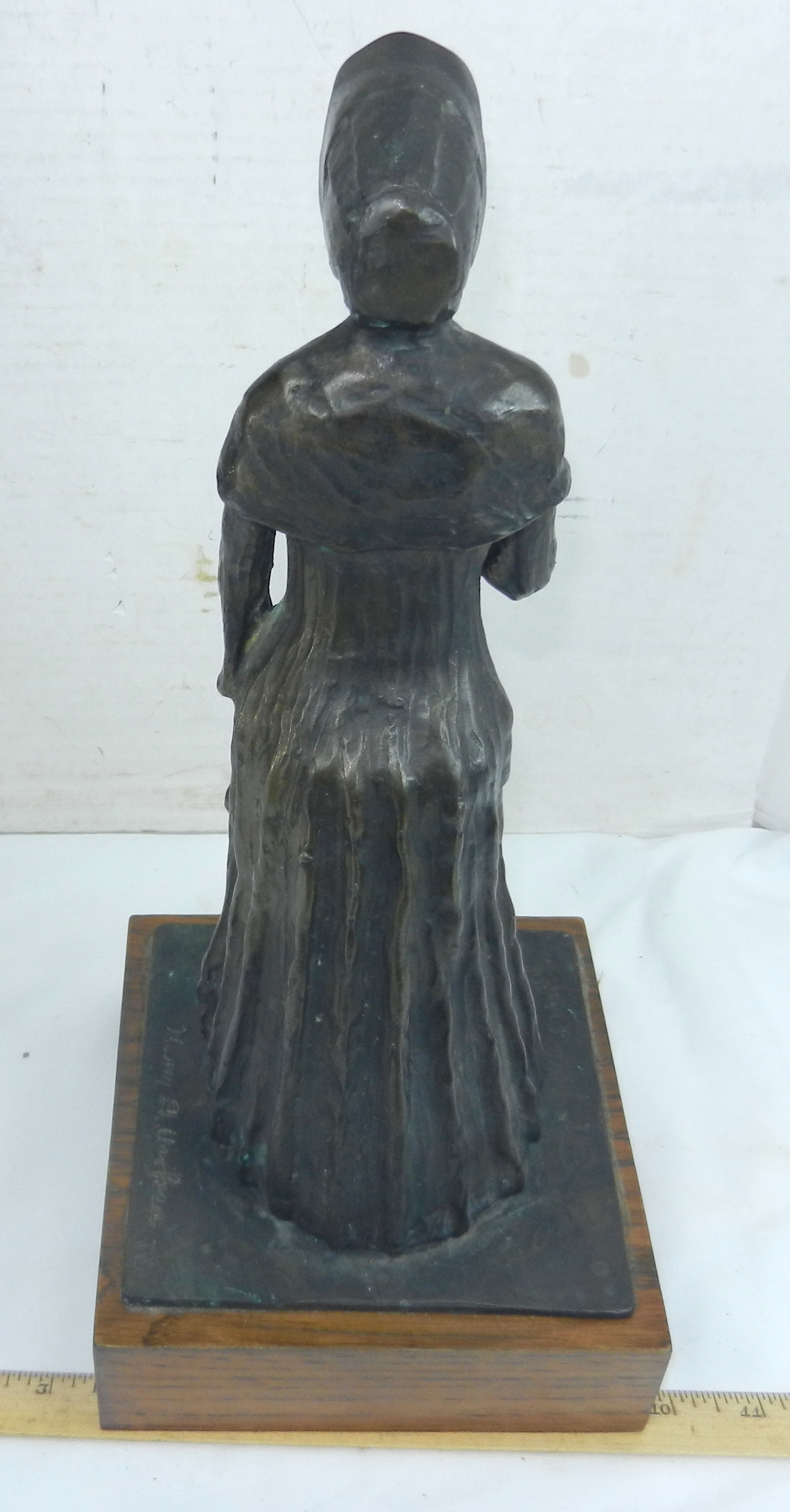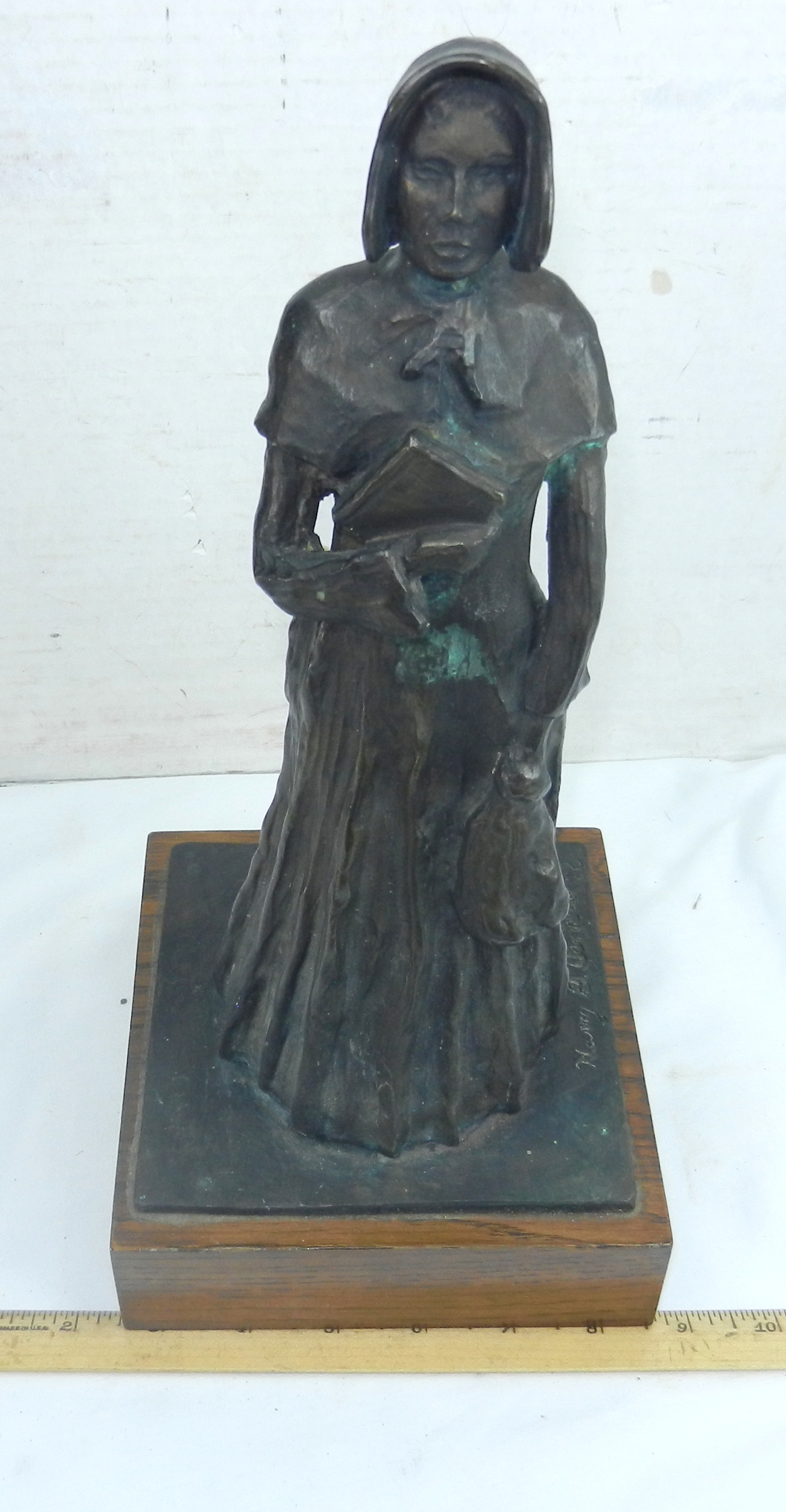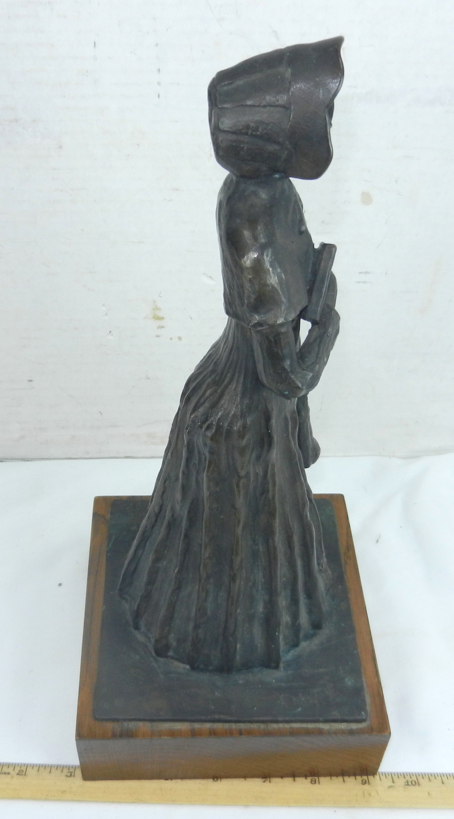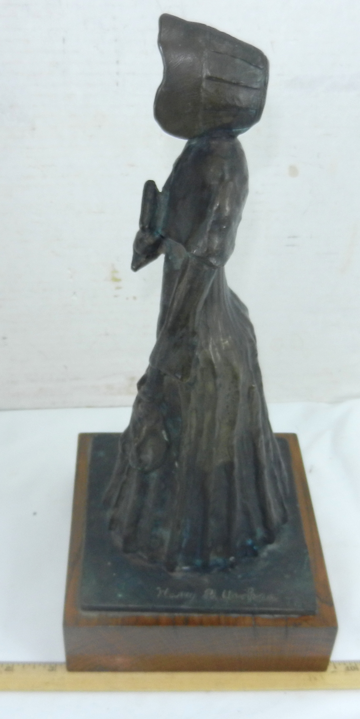 Statue Pioneer Woman Pilgrim Puritan Sculpture Signed Bronze