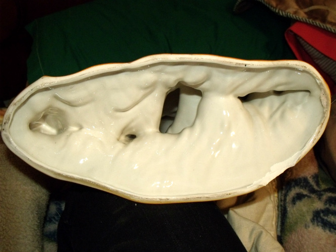 I don't know anything about this item as I cant find it on the net anywhere. It's just over a foot tall and about the same width. It looks like carnival glass and is hollow. There are no signatures or anything like that on it.