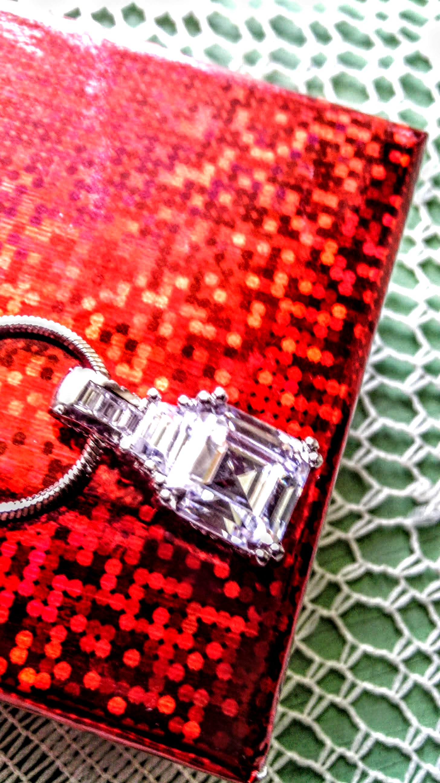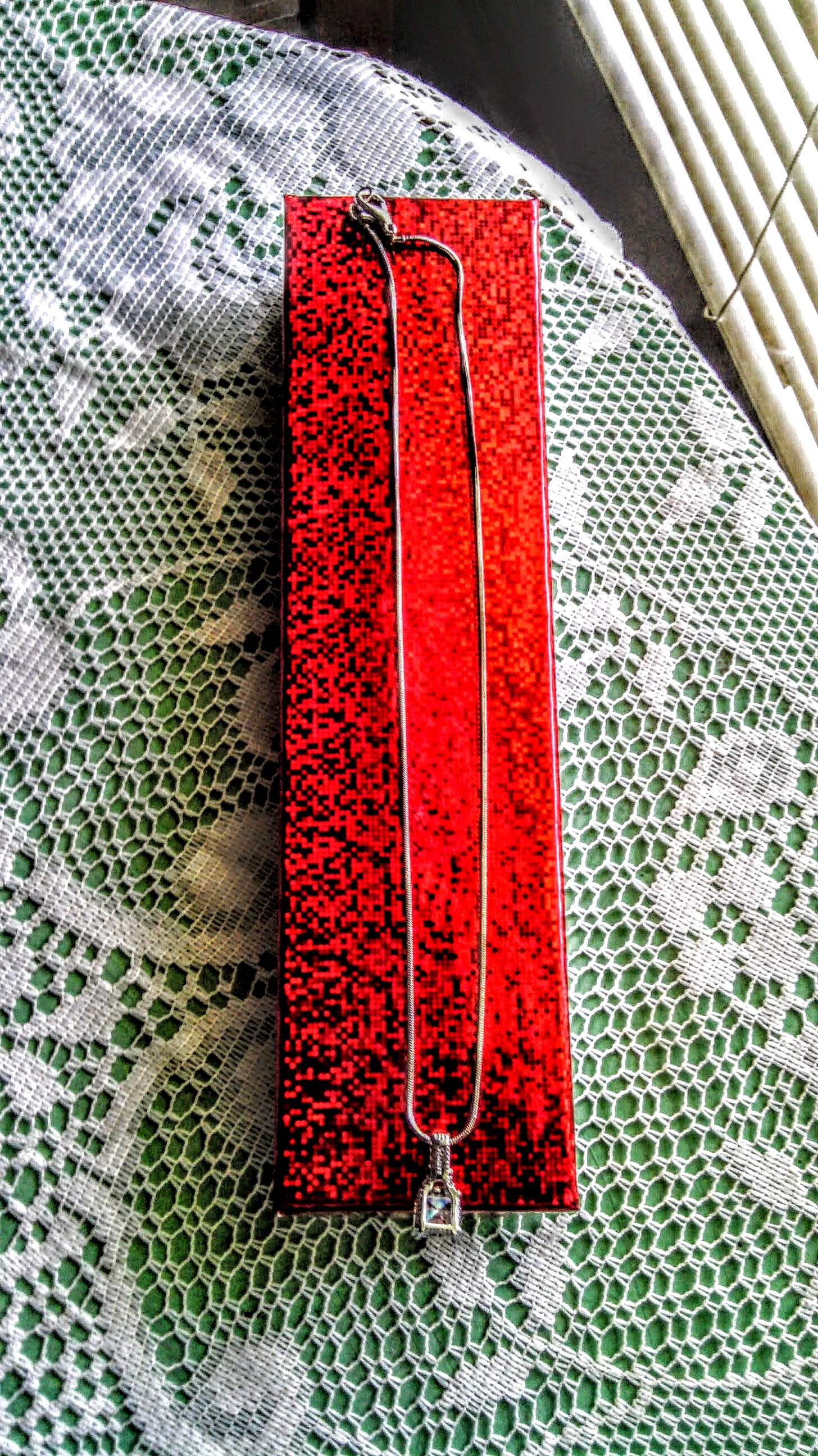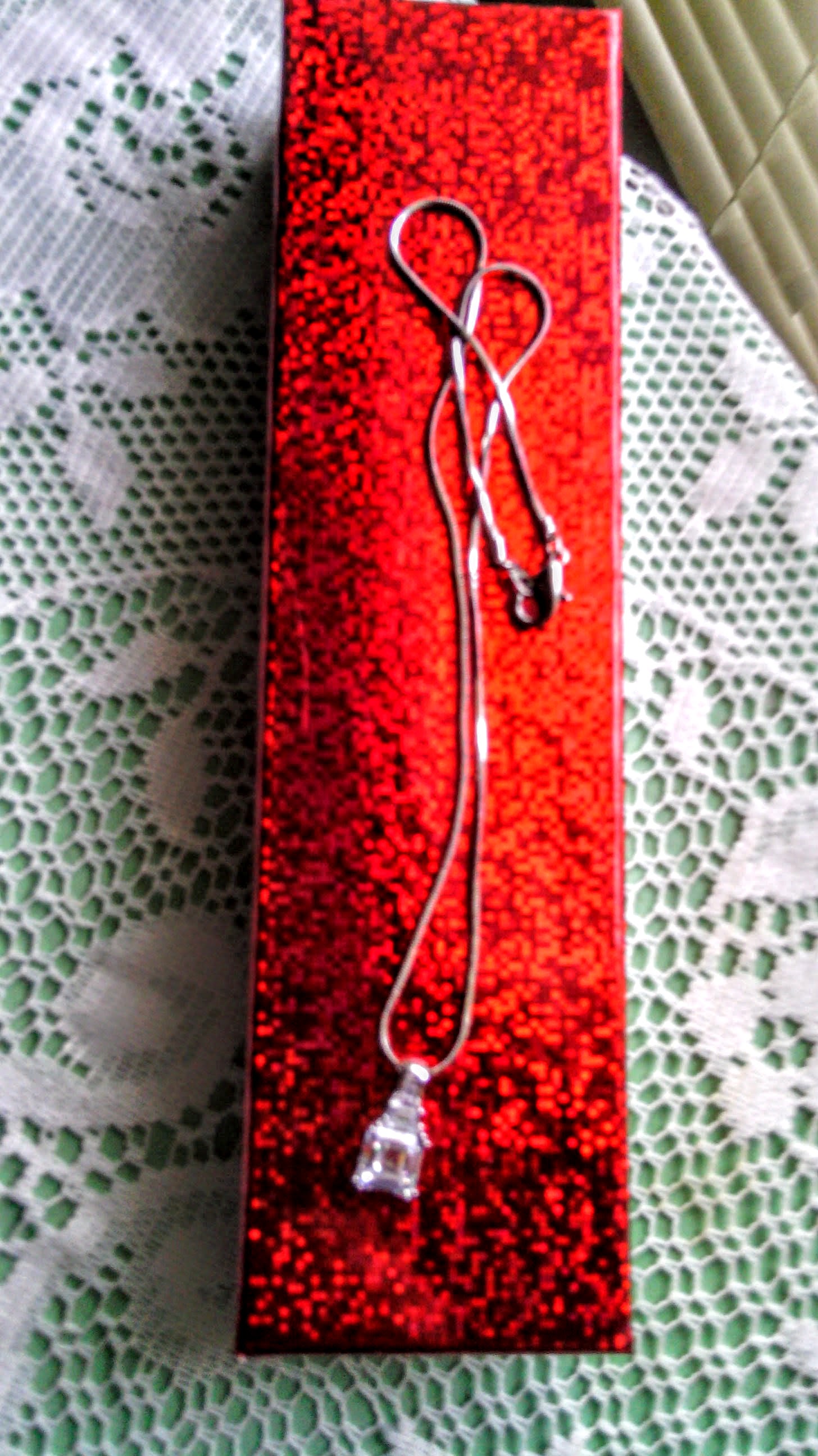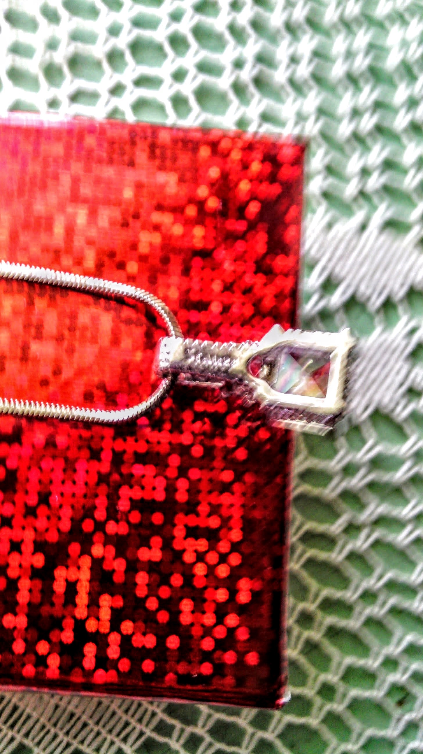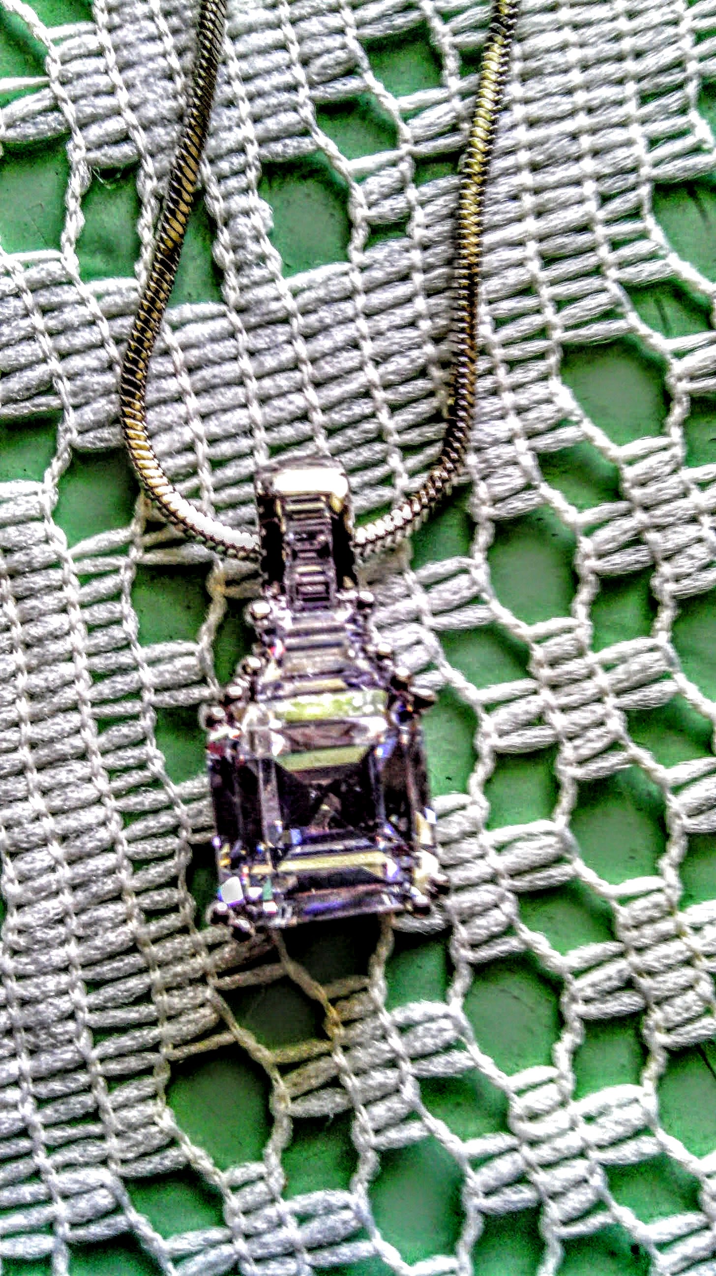 Is it white Sapphire, Cubic Zirconia, White Topaz are Glass- Is the chain Silve, White Gold, is not attracted to a magnent.