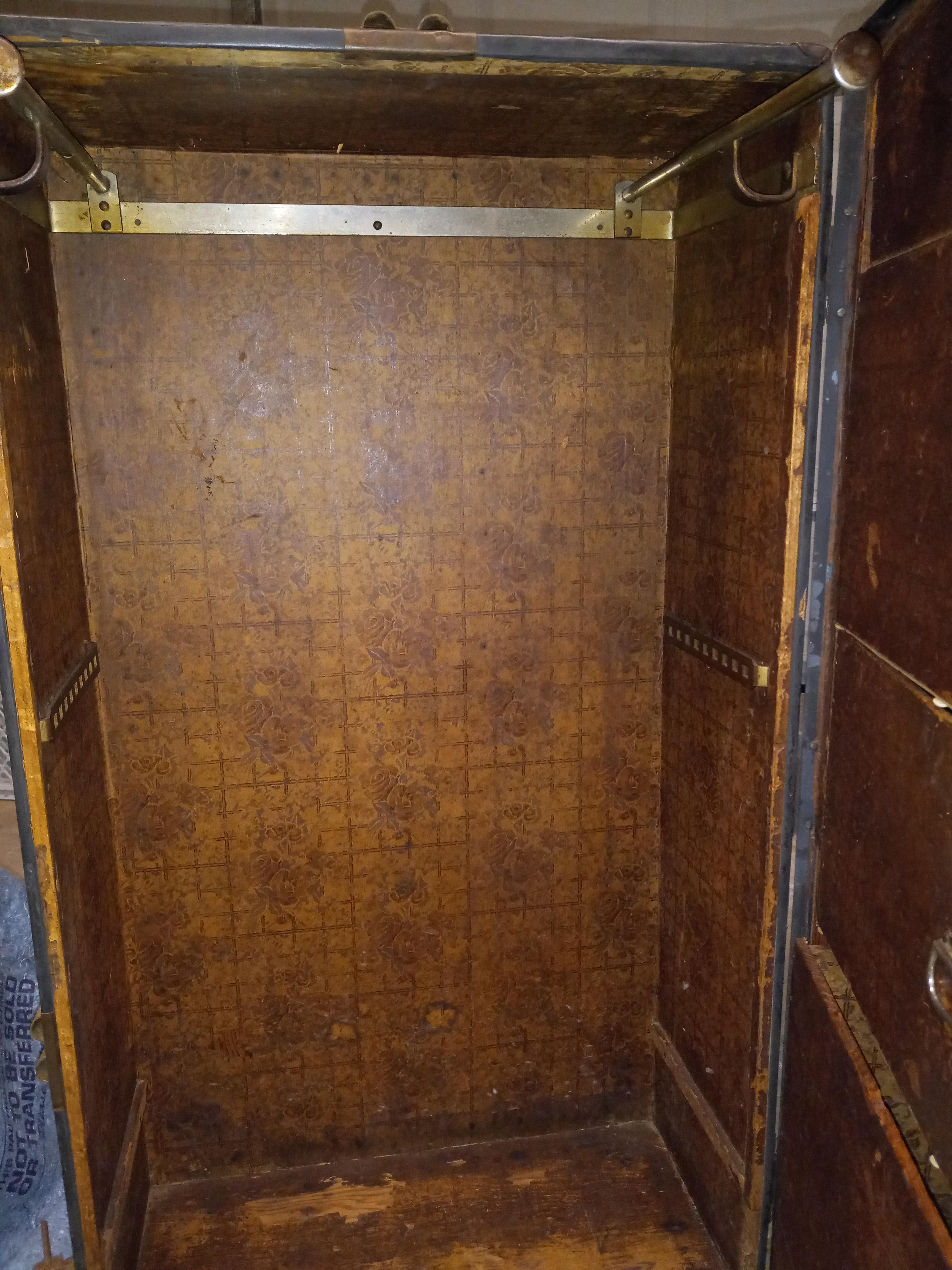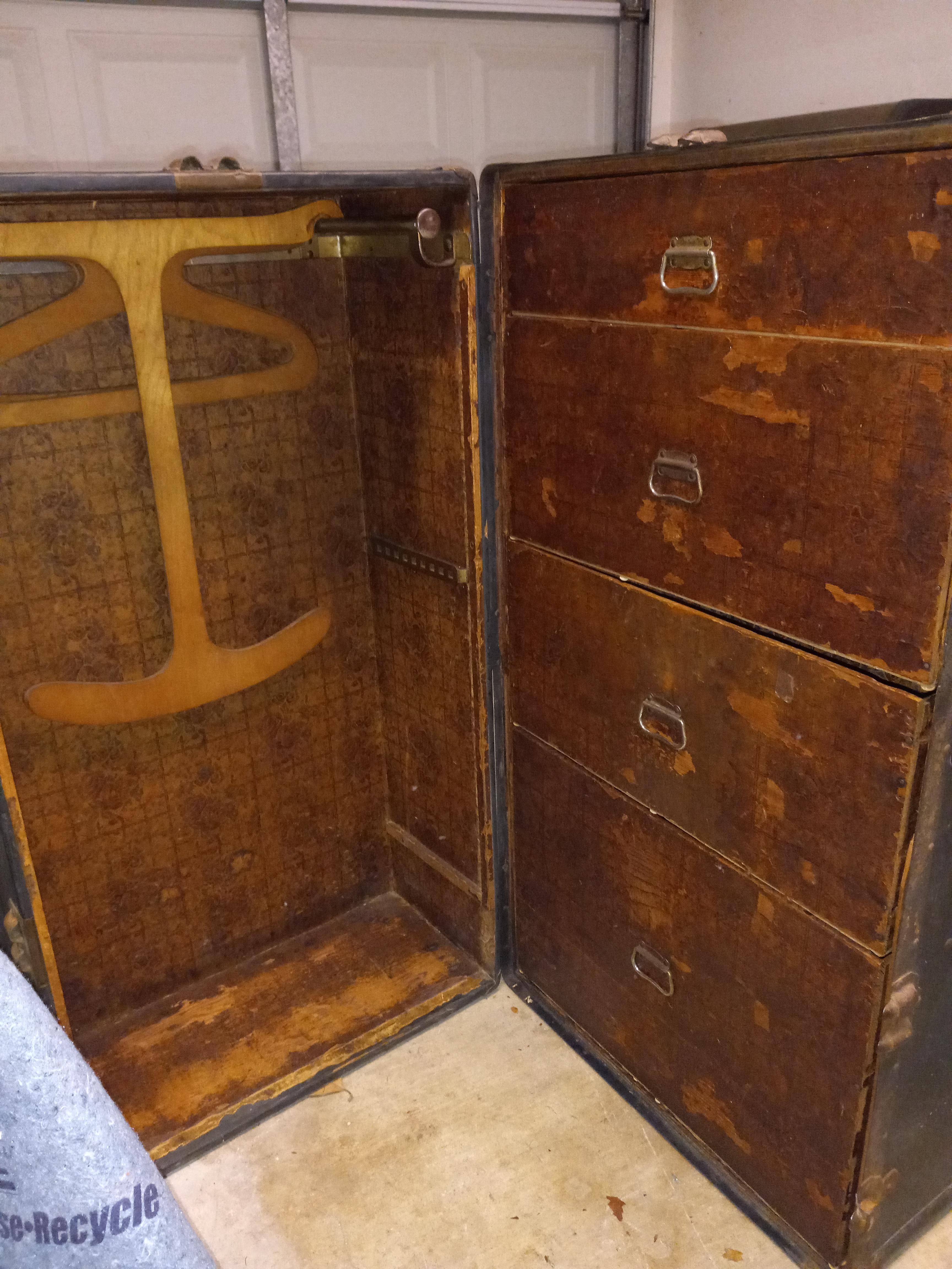 I have inherited a steamer wardrobe trunk and am trying to find more information about it. I called an antique store and they suggested I do my own research on it. I scoured the internet all day and the biggest discovery I had is that it has a hole mount lock from Atkinson & Long. I know this puts it circa 1850-1920 but I still don't have a manufacturer or what it may be worth. Any help finding more clues or an actual appraisal is most appreciated.