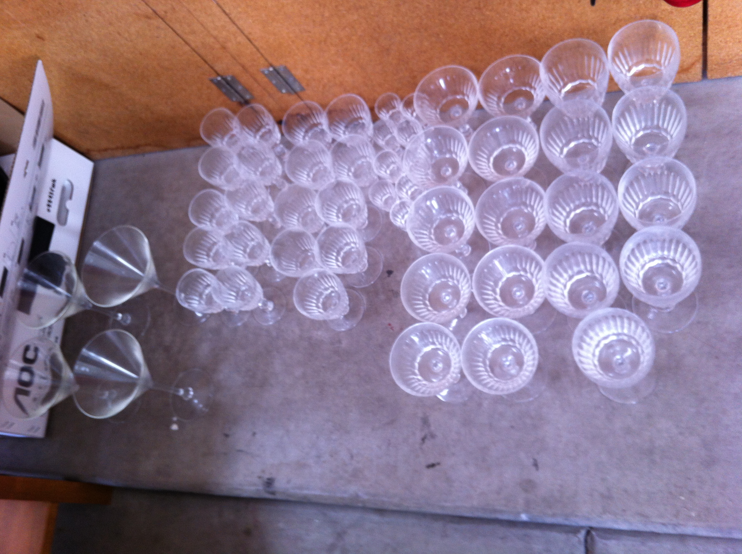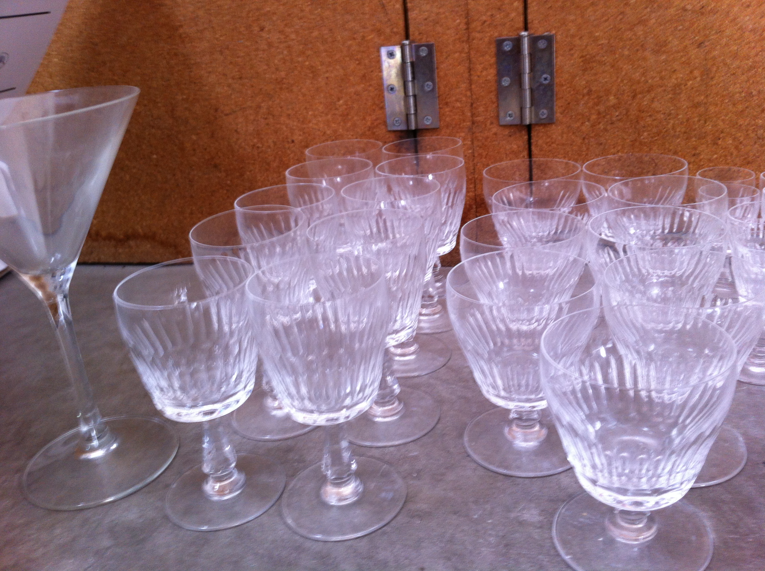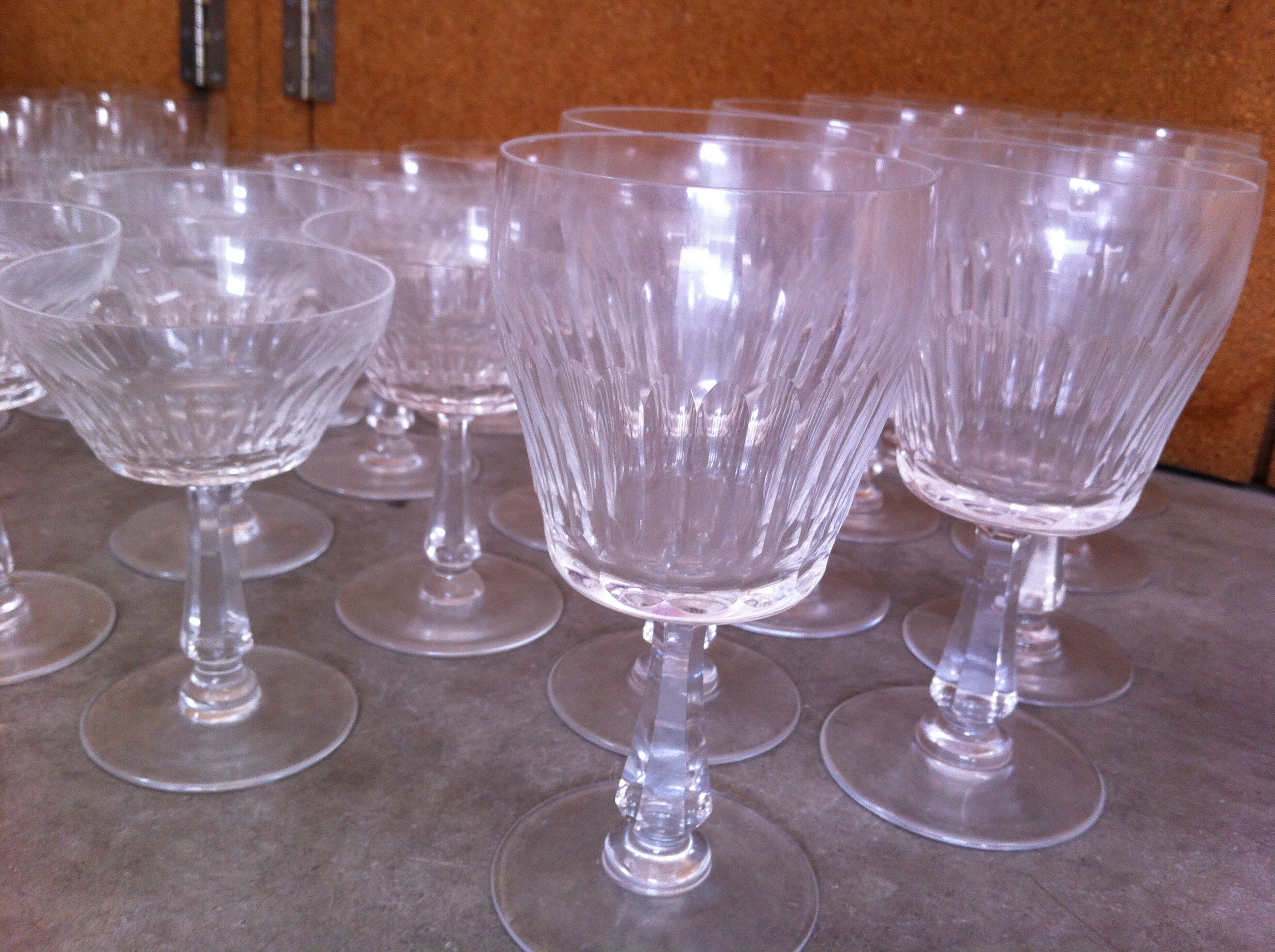 These are antique crystal glasses/stemware set - 47 pieces in total. 5 types of stemware (wine, liquor, champagne, etc), I have 8-10 pieces of each of the 5 types.