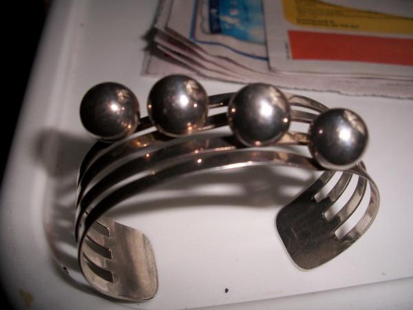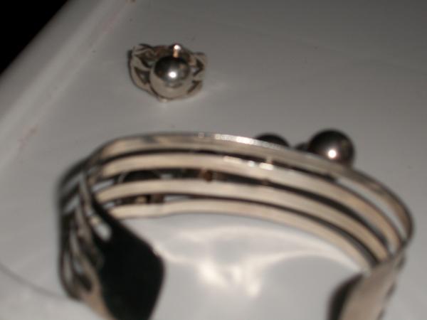 Matching stirling silver bracelet and ring. Each ball has a hole behind it to put perfume in. Given as a gift approximately 70 years ago as of 2010.
