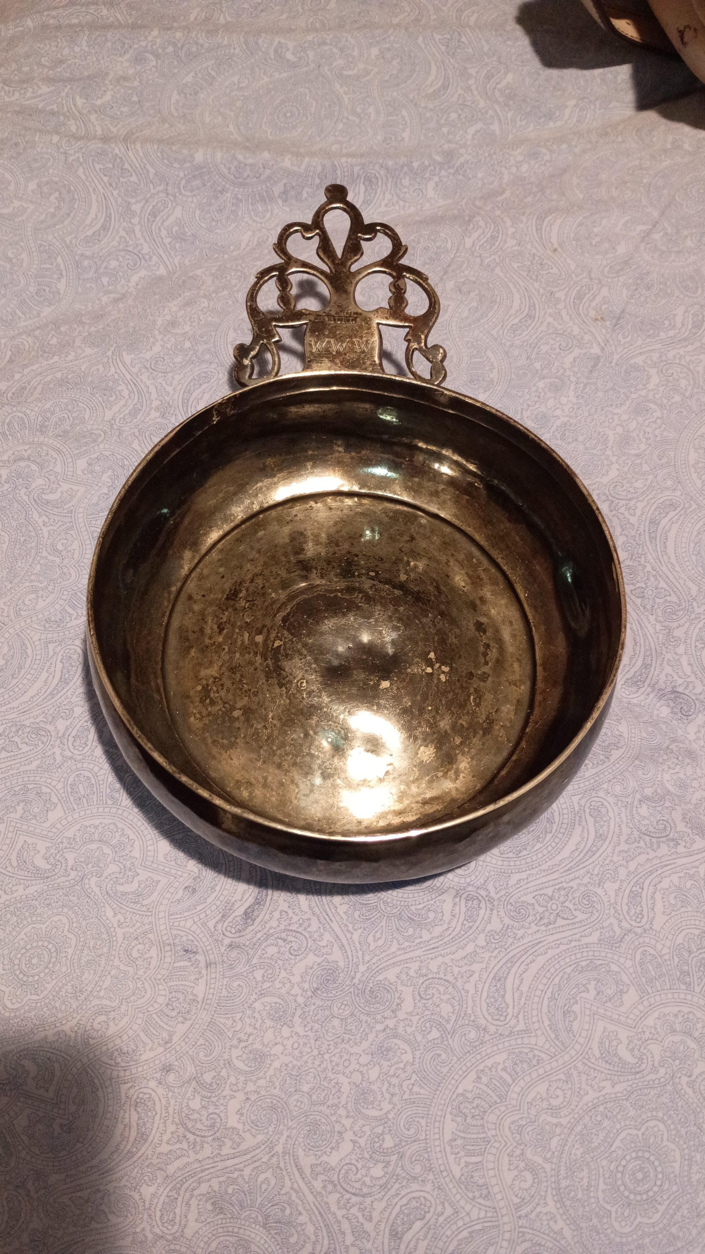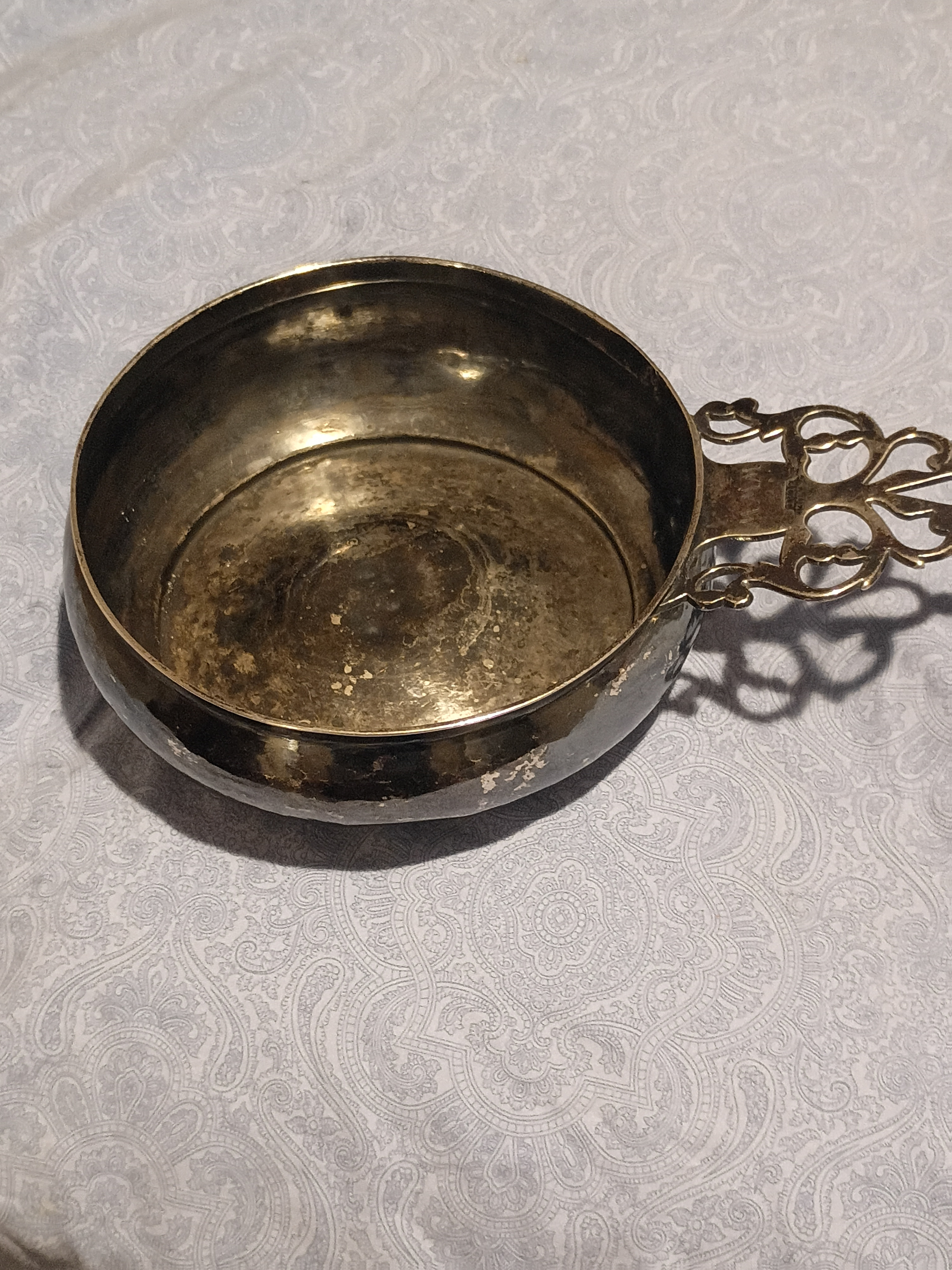 Silver pottinger made by Bostonian silversmith Samuel Burt circa 1750. It weighs approximately 210g. Thank you for your time.
