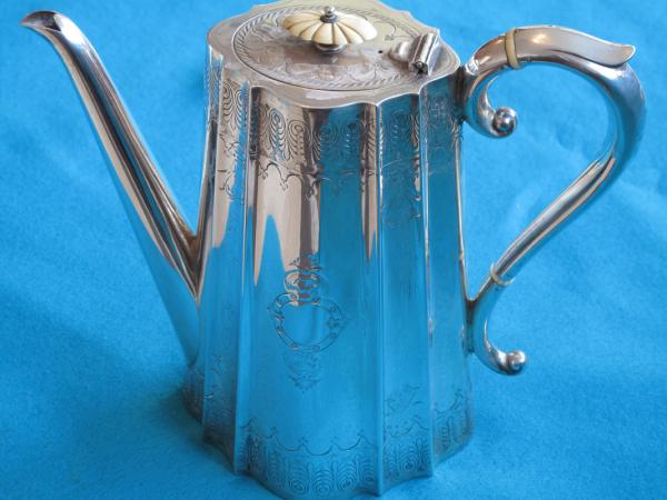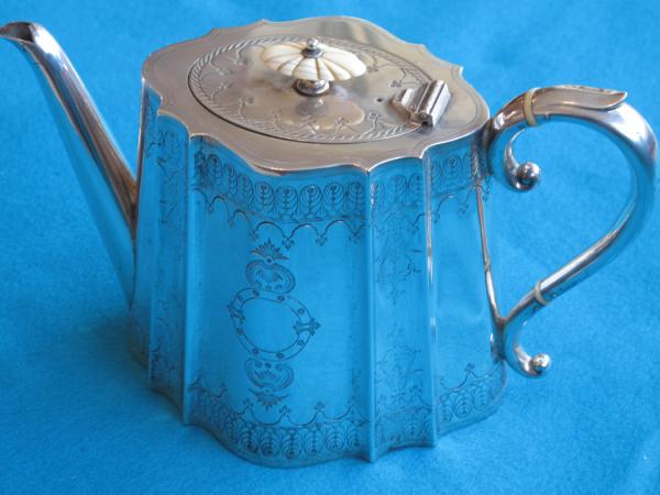 4 piece Sheffield Silver Tea Set. Assay marks date this item as 1888 and the makers mark is J.R