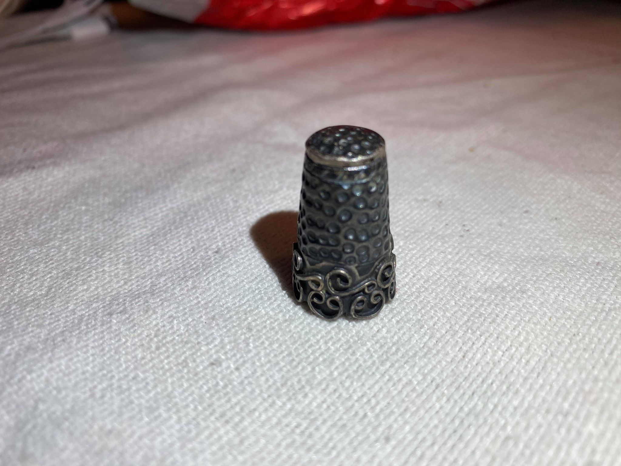 This listing on ebay at $29 is also very similar: https://www.ebay.com/itm/ANTIQUE-STERLING-SILVER-ORNATE-FILIGREE-DOLLHOUSE-THIMBLE/141902297284?_trkparms=aid%3D1110001%26algo%3DSPLICE.SIM%26ao%3D2%26asc%3D20160323102634%26meid%3Da0d283fd32ee4dd1979e82b9cf64b495%26pid%3D100623%26rk%3D2%26rkt%3D6%26sd%3D362637393737%26itm%3D141902297284%26pmt%3D0%26noa%3D1%26pg%3D2047675&_trksid=p2047675.c100623.m-1