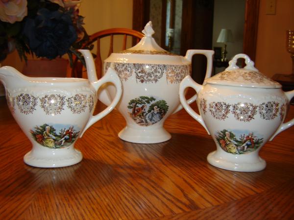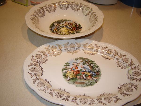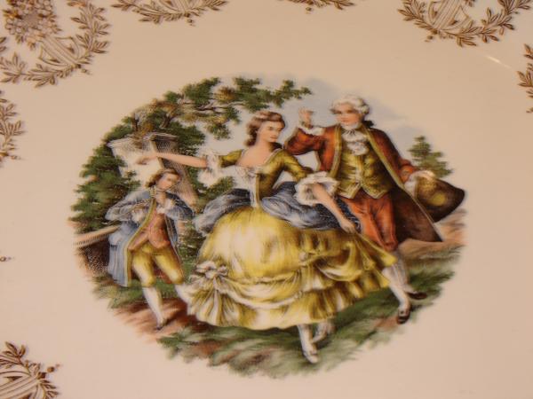 Stetson China, scalloped edges trimmed in 22k gold with George & Martha Washington courtship scenes in middle. Very good shape.