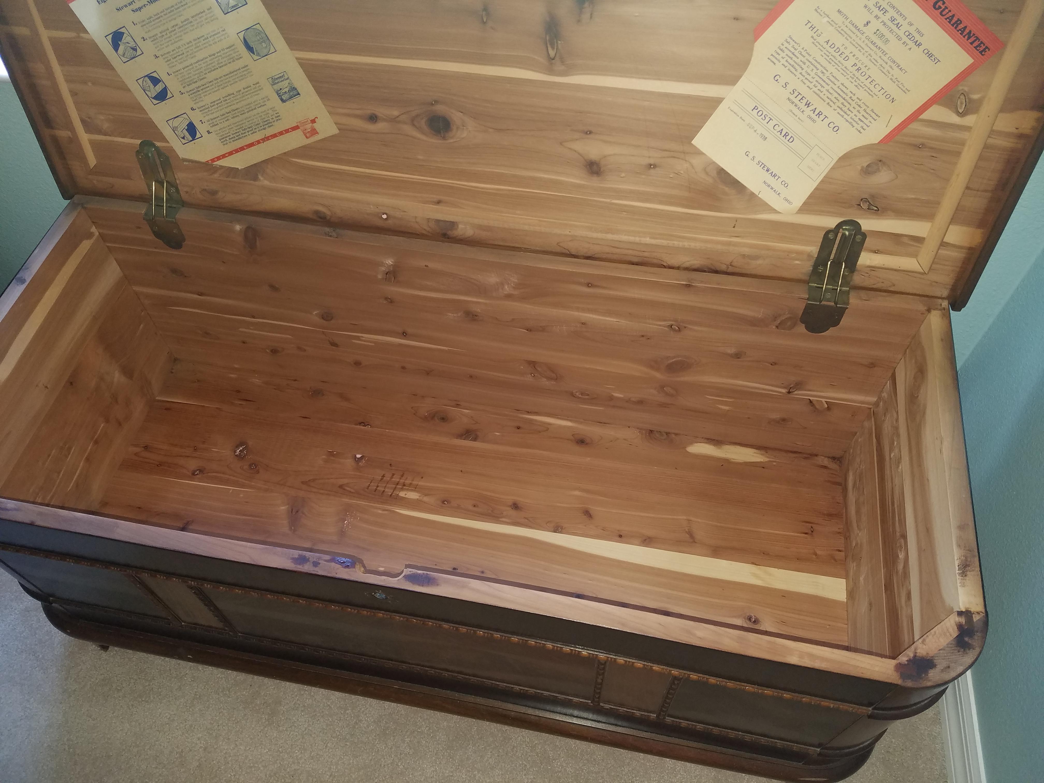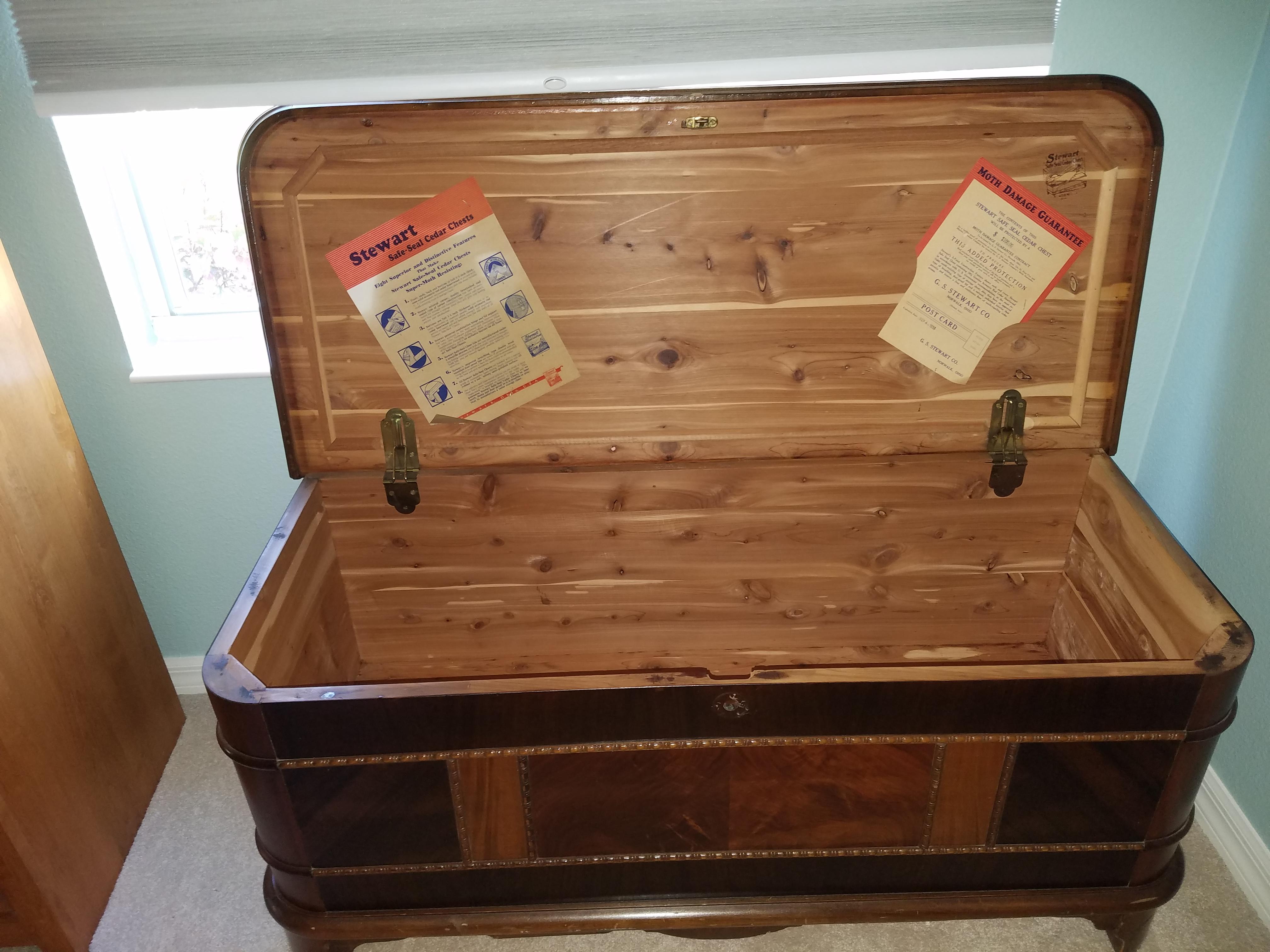 1938 original cedar chest papers still attached and original stamp. In good condition the inside looks like it's never been used