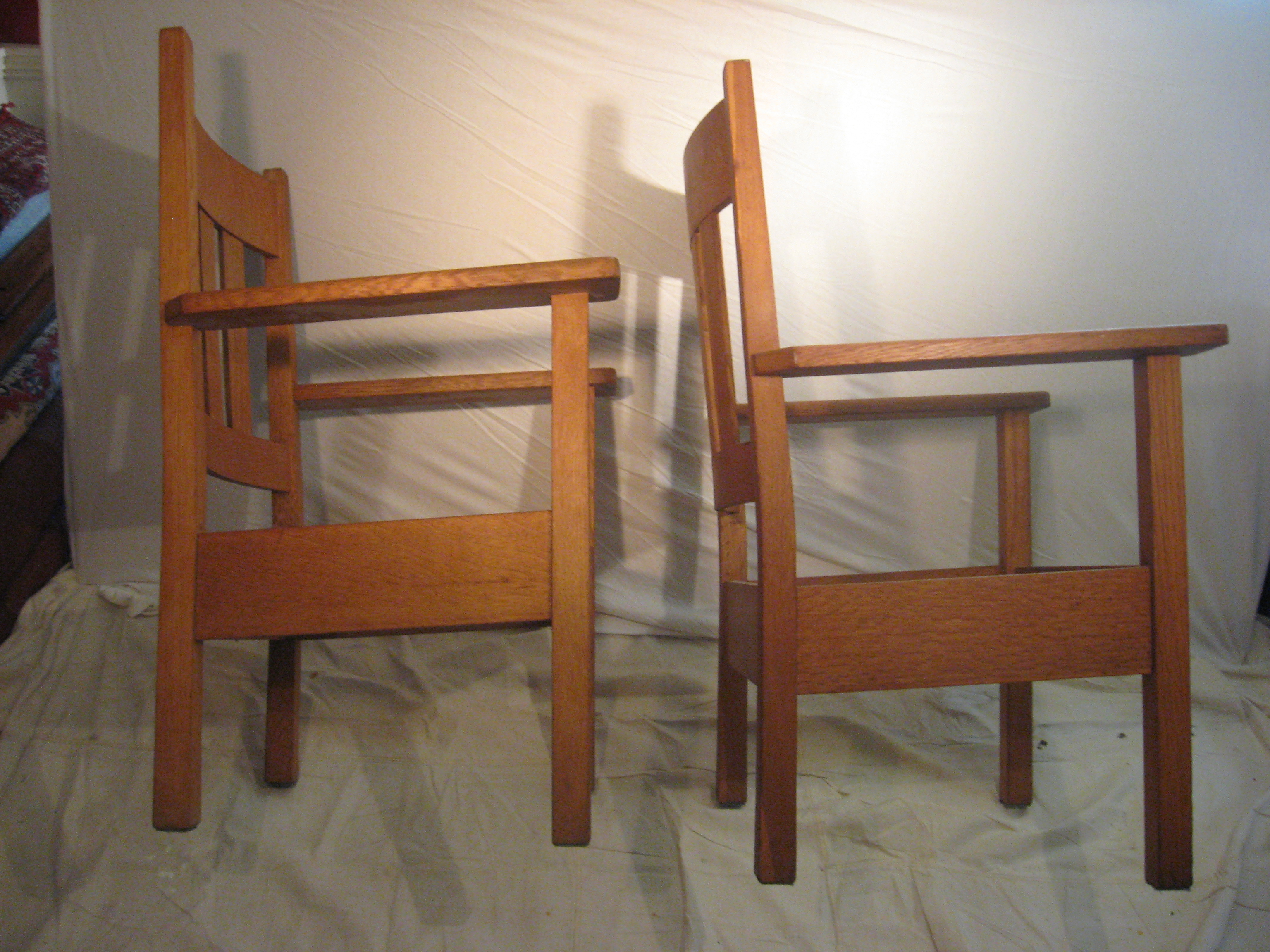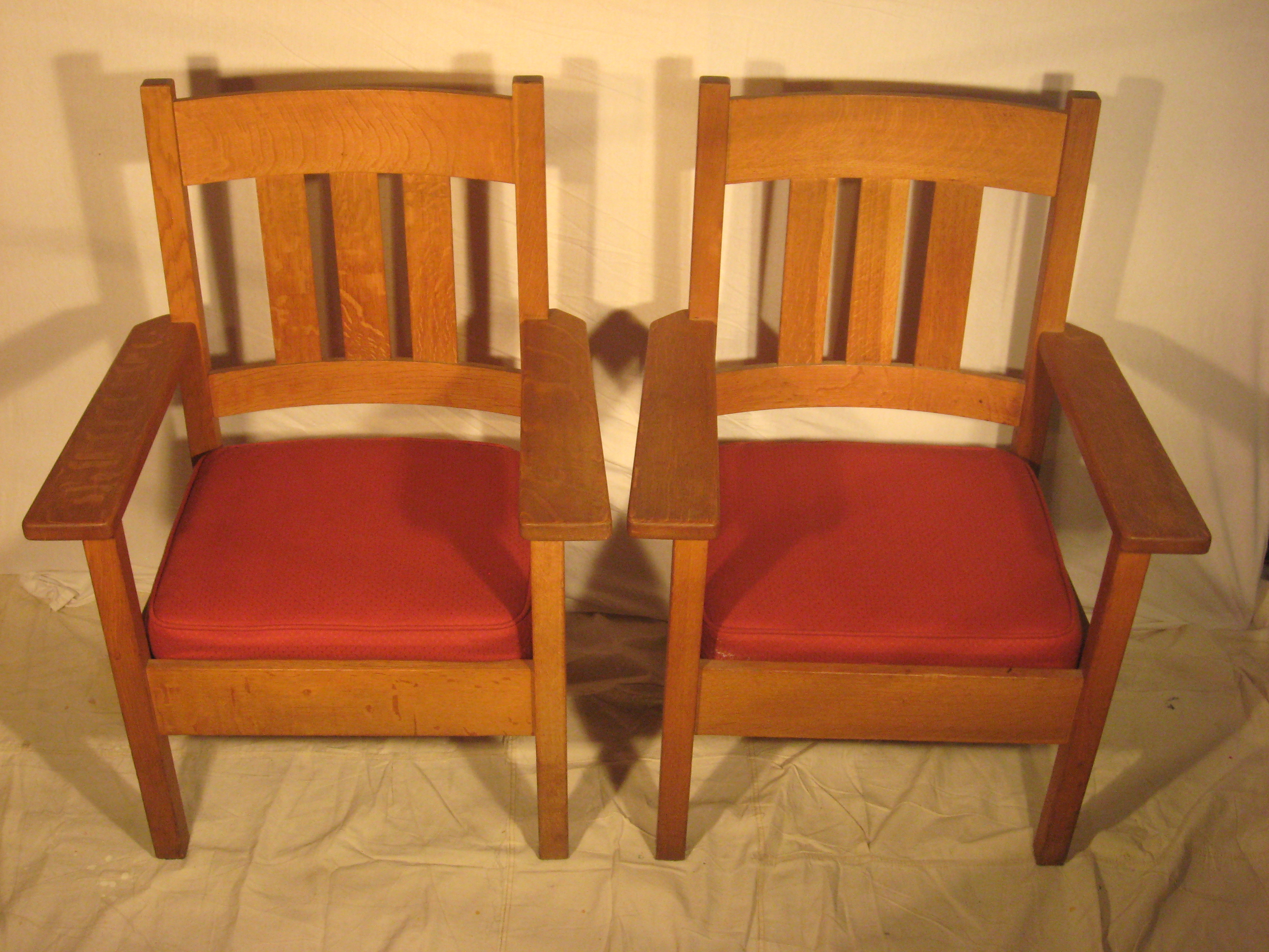 2 Stickley Bros "Quaint Furniture" armchairs. Cushions plus non-original covers.