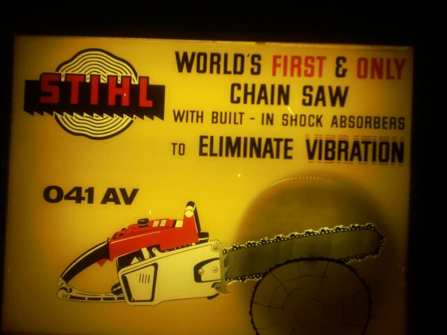 I have a early 70's stihl sign ... Its lighted and has motion ... Its in perfect condition and 100% original .. Even the lightbulb ... Its the hardest to find as well as the most desired ... If anyone is interested in purchasing it call me at 567-215-7537 .... Or email me at [email protected] I have had offers up to $450.00 .... Serious offers only please