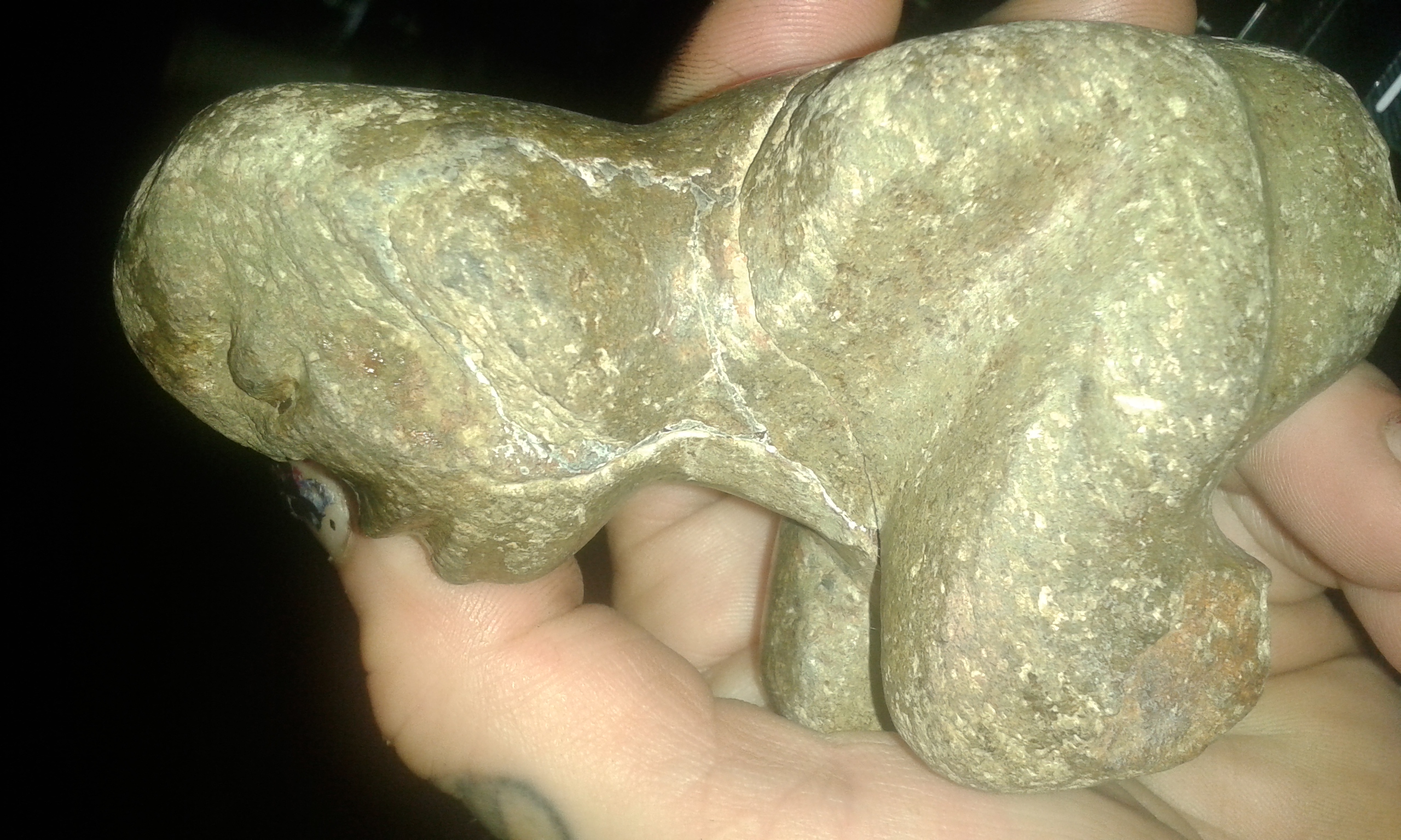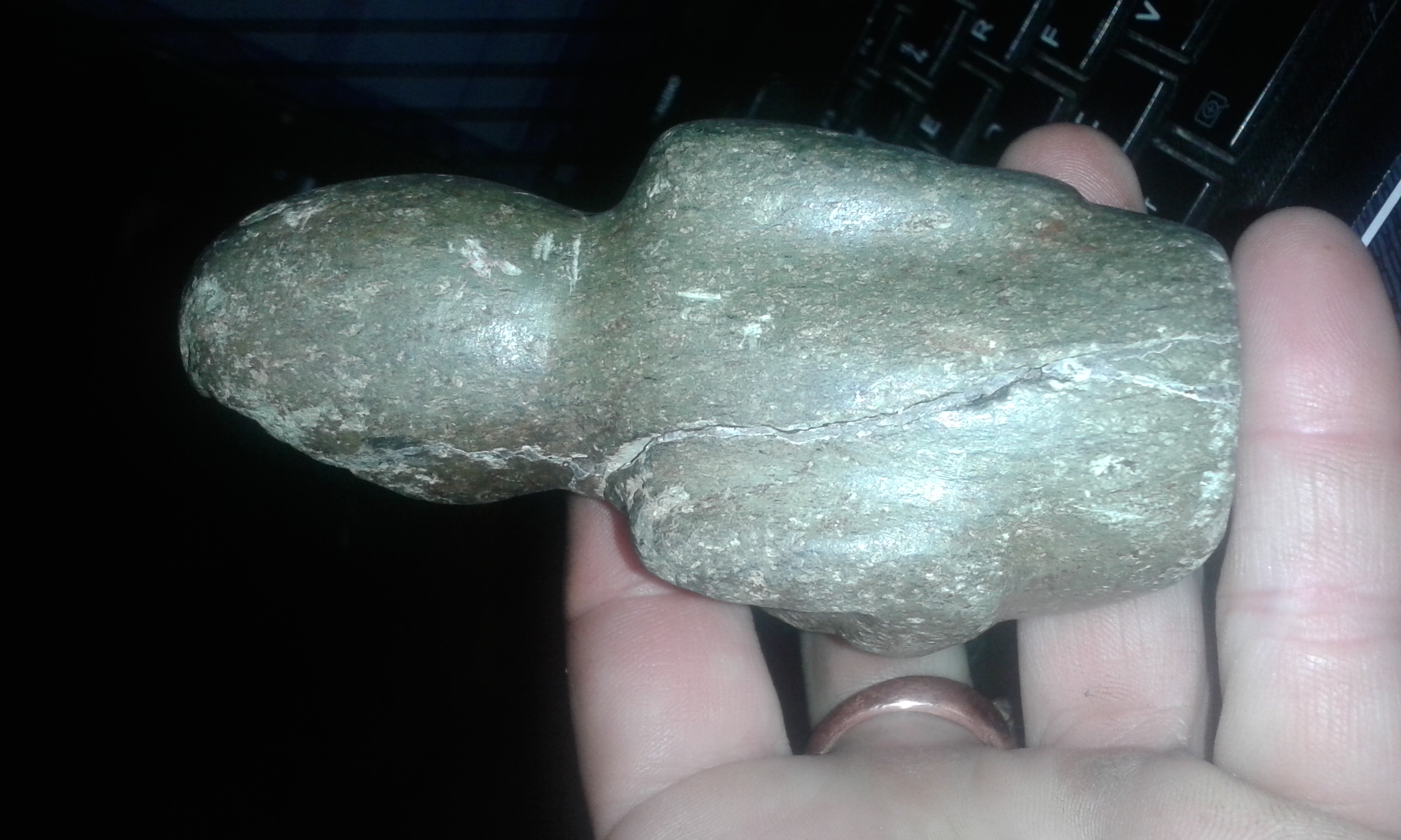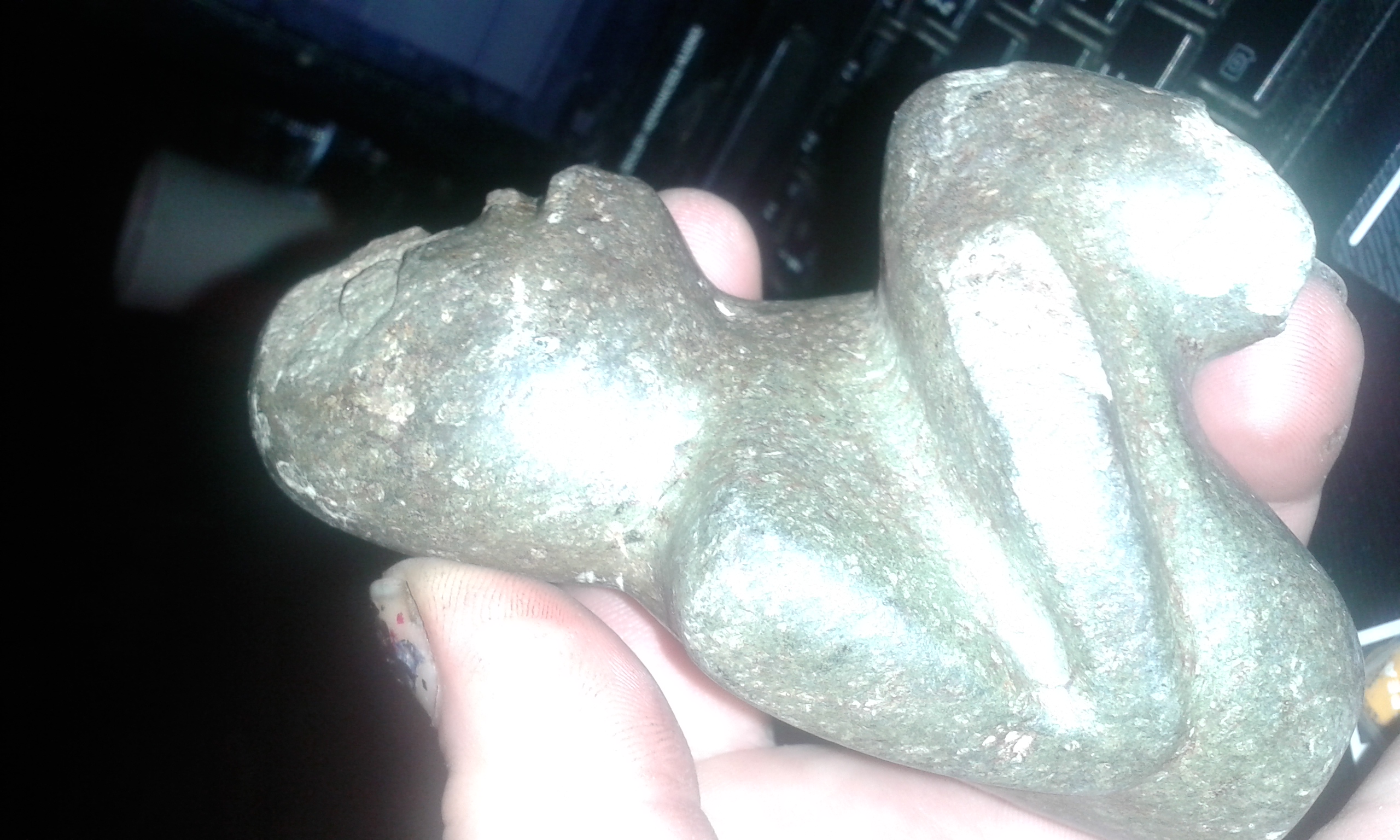 This Peice is 4 1/2 high 3 at its widest. It is a man, who is stooped over. I believe it May be... pre columbian jade belonging to the OLMECK people who were an ancient civilization.