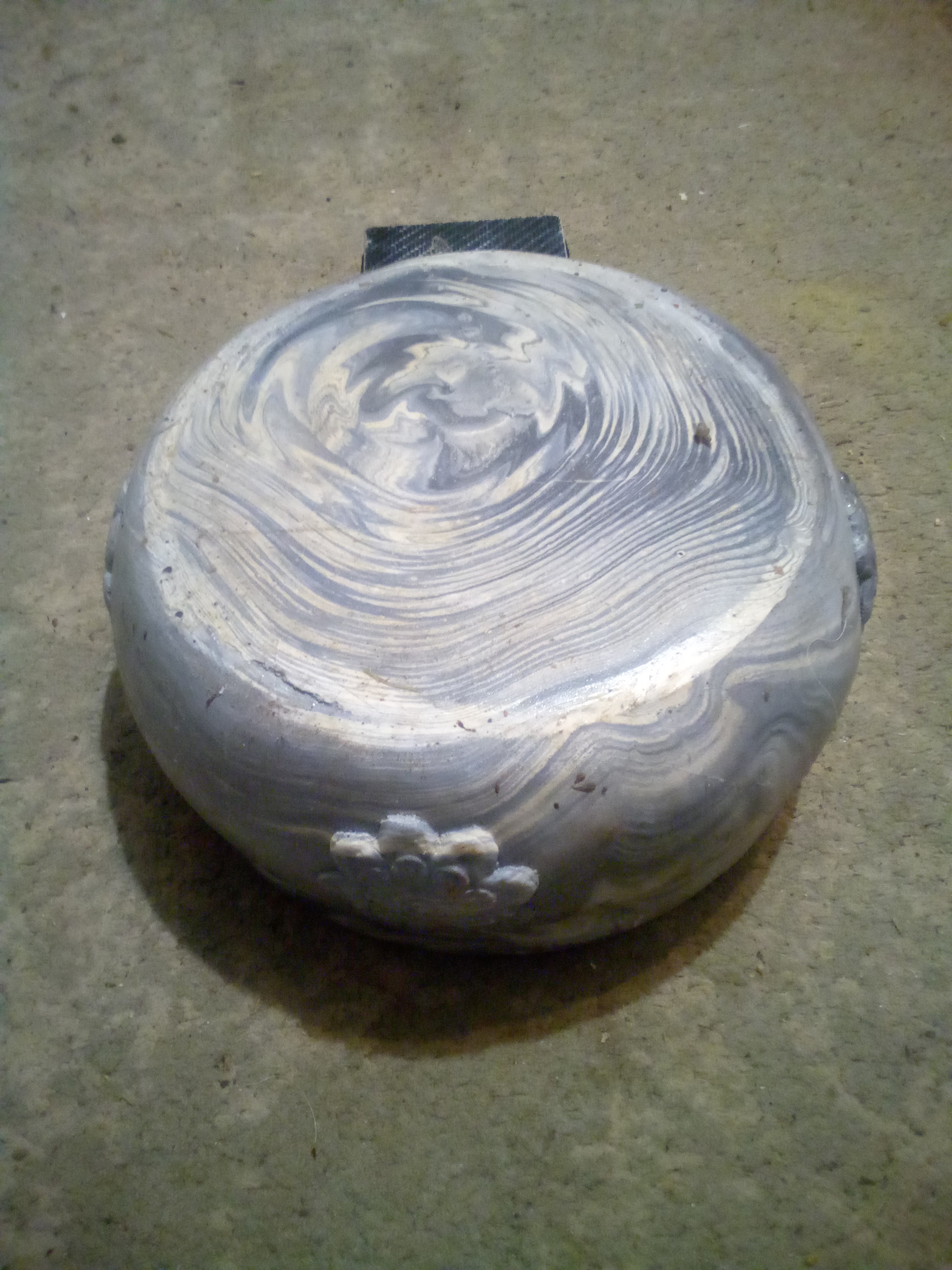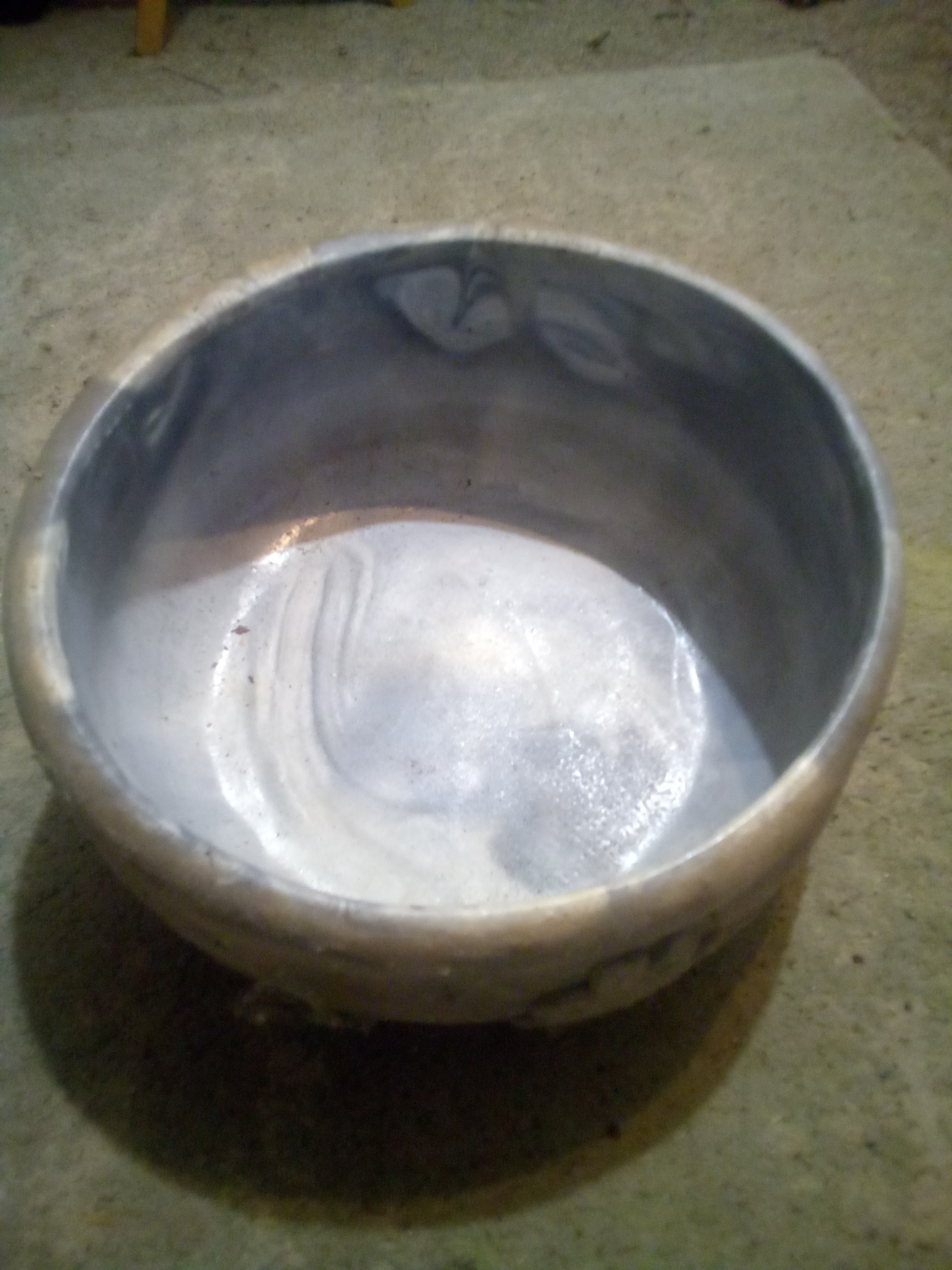 Interesting Facts: The swirling design is reminiscent of techniques used in various pottery traditions, where artisans create visual interest through layering and mixing of colors. The bowl's weight indicates it may have been intended for practical use as well as decorative purposes.