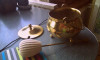 Physical Description: This is a unique swirled bowl made from some form of porcelain. The bowl measures approximately 4 to 6 inches in diameter at the top and tapers to about 3 inches at the base. It has a weight of approximately 5 to 10 pounds. The exterior features four identical symbols embossed on the sides, contributing to its distinctive appearance.
