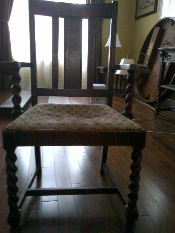Stratford Chair Company oak dining room set. Table with 4 leaves, 6 chairs, server, china cabinet and mirrored buffet.
