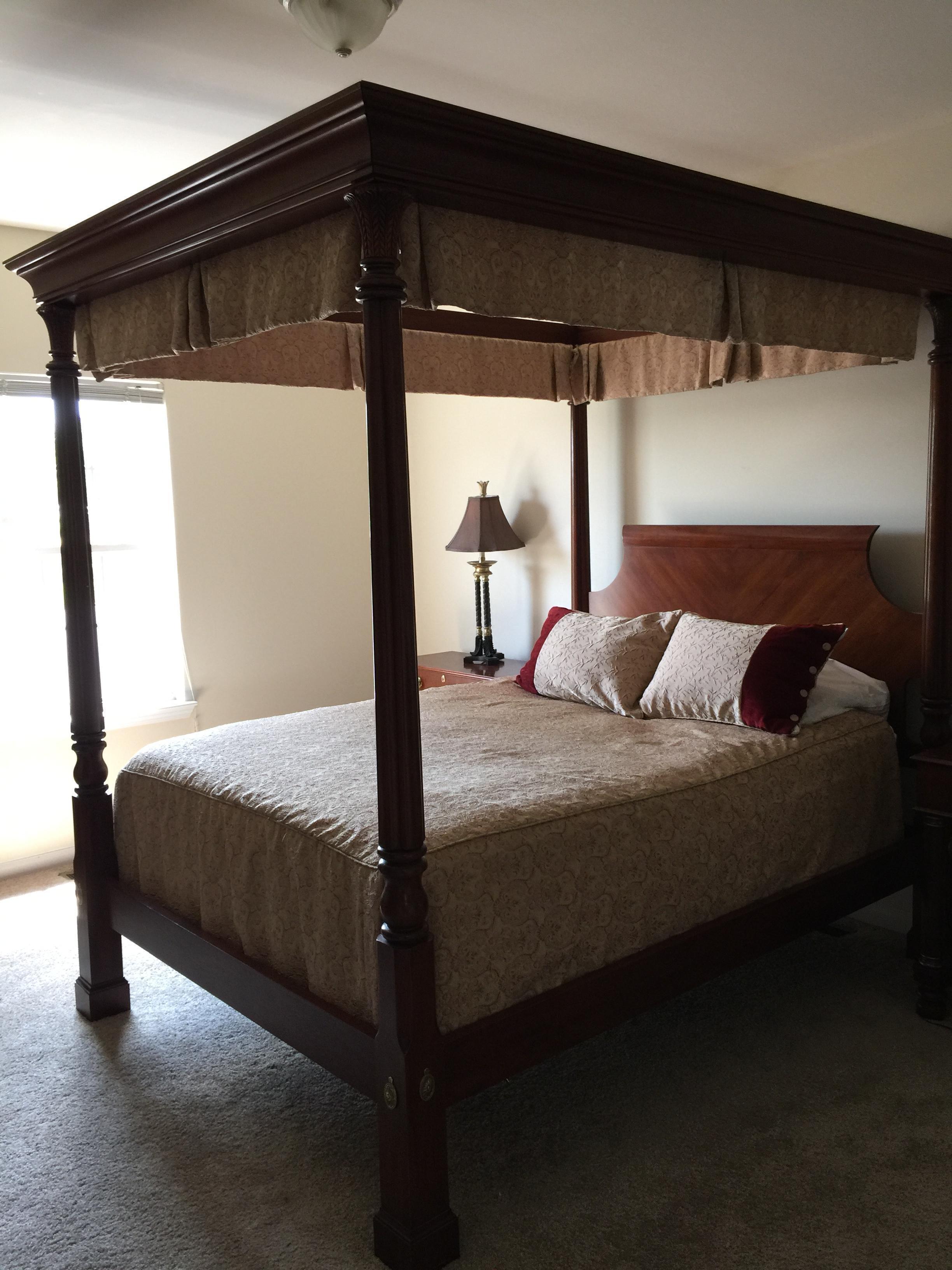 Poster bed with a canopy is the centerpiece of the collection. Bed includes custom canopy, duvet, and custom decorative pillows.