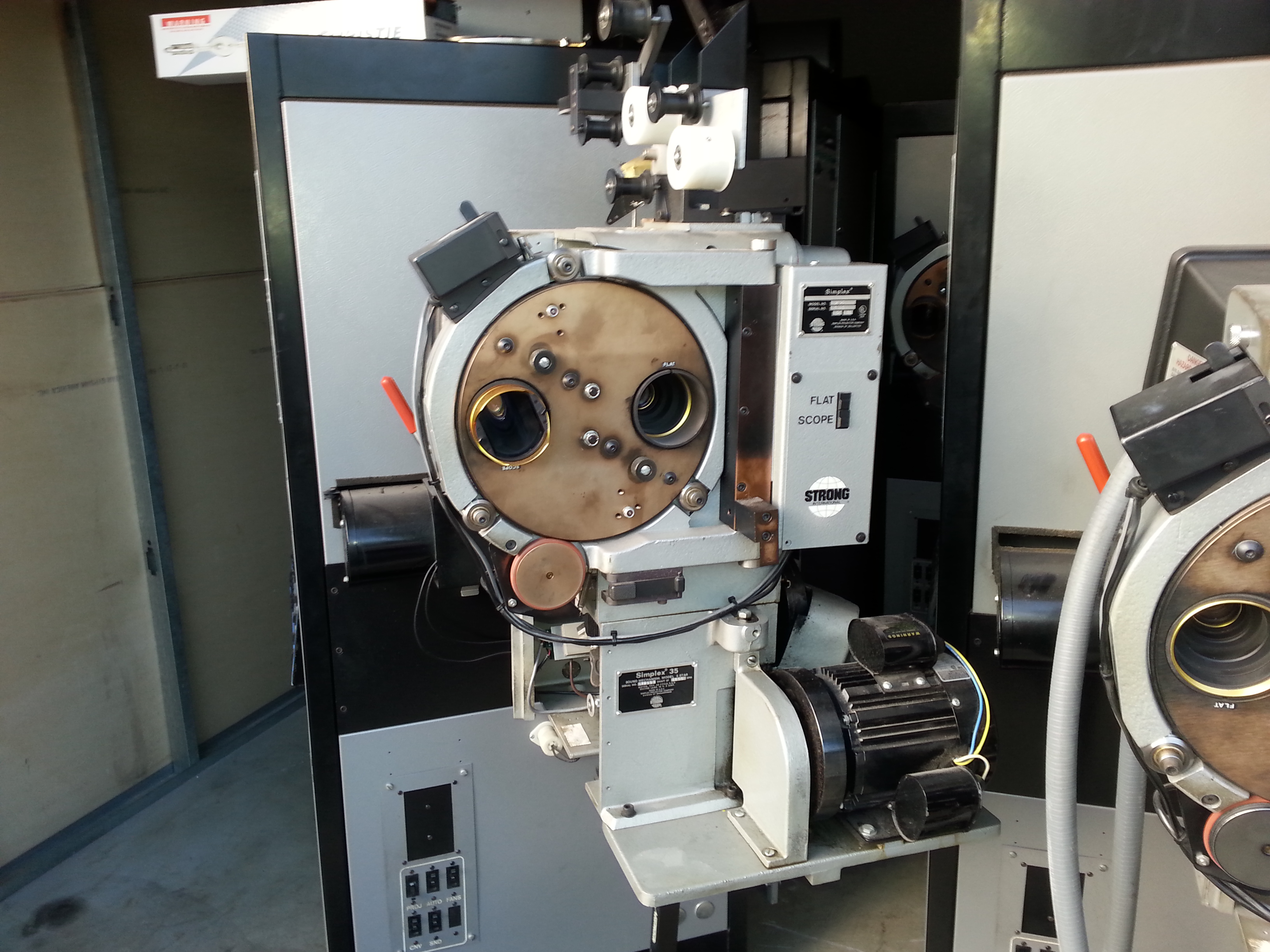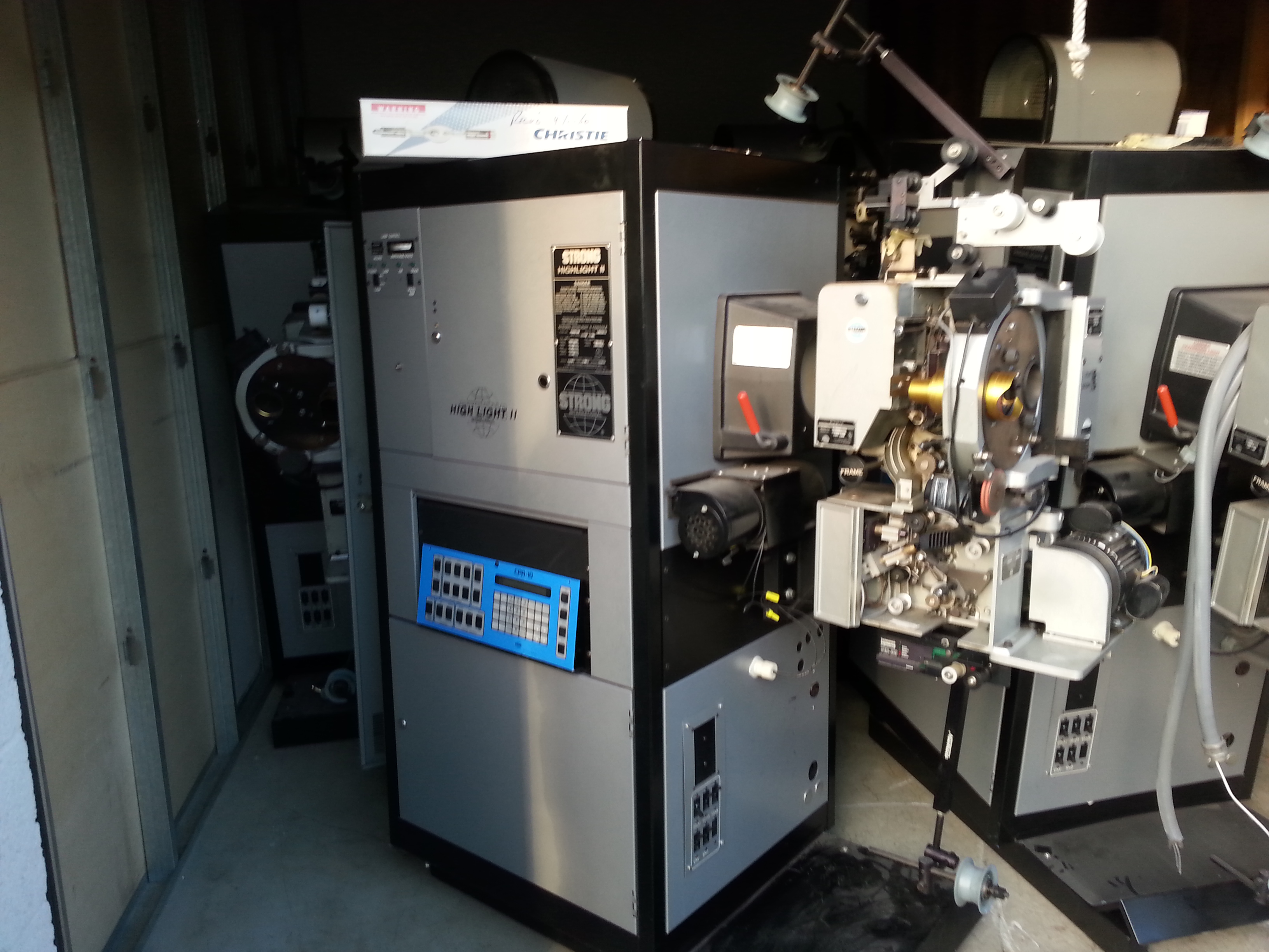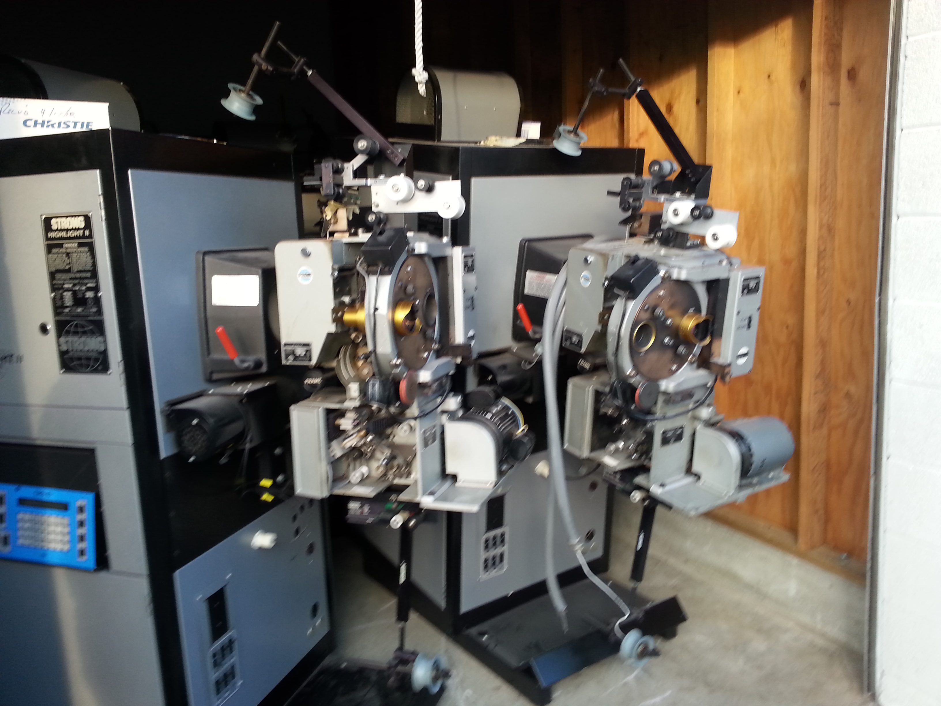 Strong Simplex 35mm Highlight II Movie Theater Cinema projector with 5 star sound head. CPA-10 theatre automation computer system. Pulled from working theatre that upgraded to digital projectors.