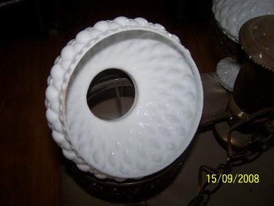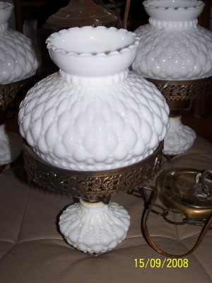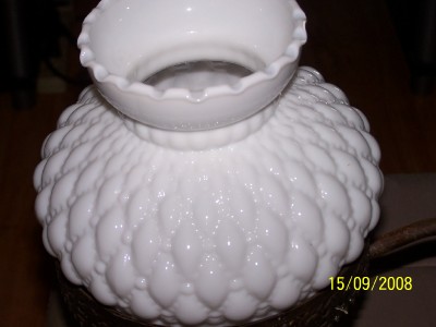 This item was taken from a small diner that was located in grand hotel that was built in 1926 I do not know if they are the original fixtures or if they were at sometimes a replacement for the original. I have 2 hanging lamps but one globe is broken and i was unable to find a replacement for it so I have a hobnail pattern on one globe