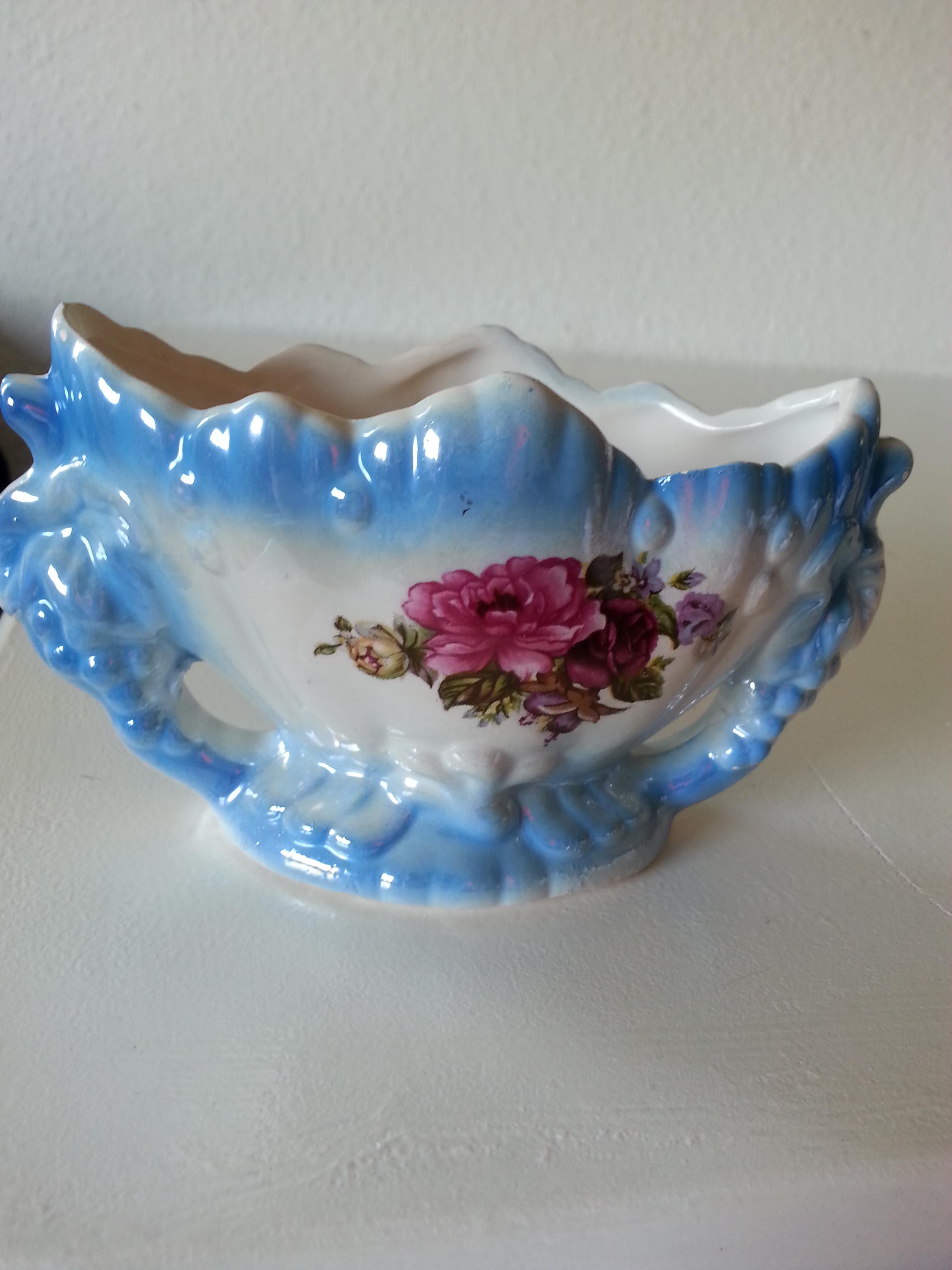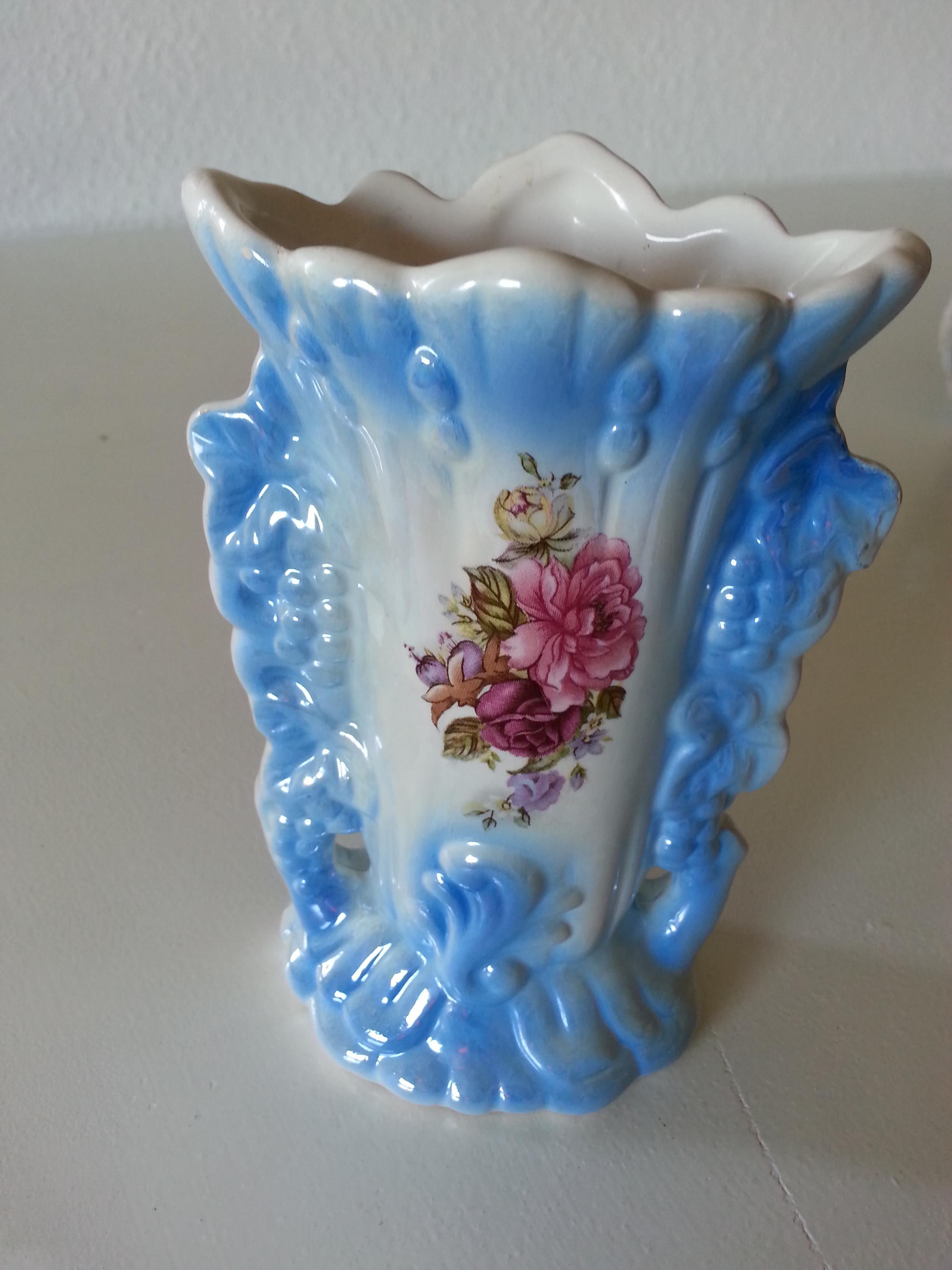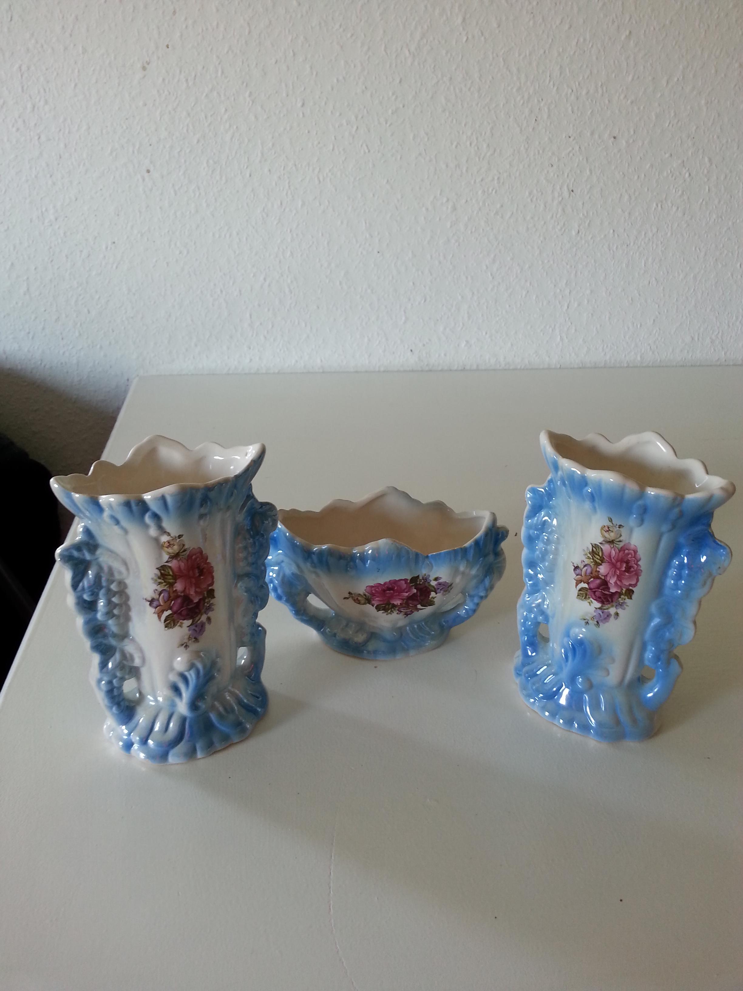 I recently purchased these at a flea market here in Germany. The blue is unusual, haven't seen it before. The glaze is shiny and iridescent. I don't know who made them and which period they are from, would love to know more about it, including approximate value. There are no markings that I can see. Thank you for any responses.