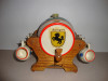 stuttgart crest of horse on front top-city in background with statue of man in front holding a book-made out of beeswax
