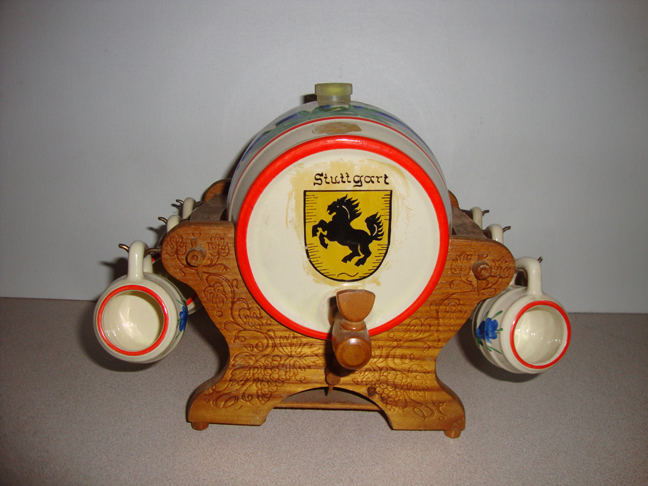 History This was left after my husband's grandmother died a few years ago. Her husband was in Germany during the war and someone owed him money and gave this item to him instead. The music box is the wooden part and it has 6 little mugs that hang. It use to contain liquor.