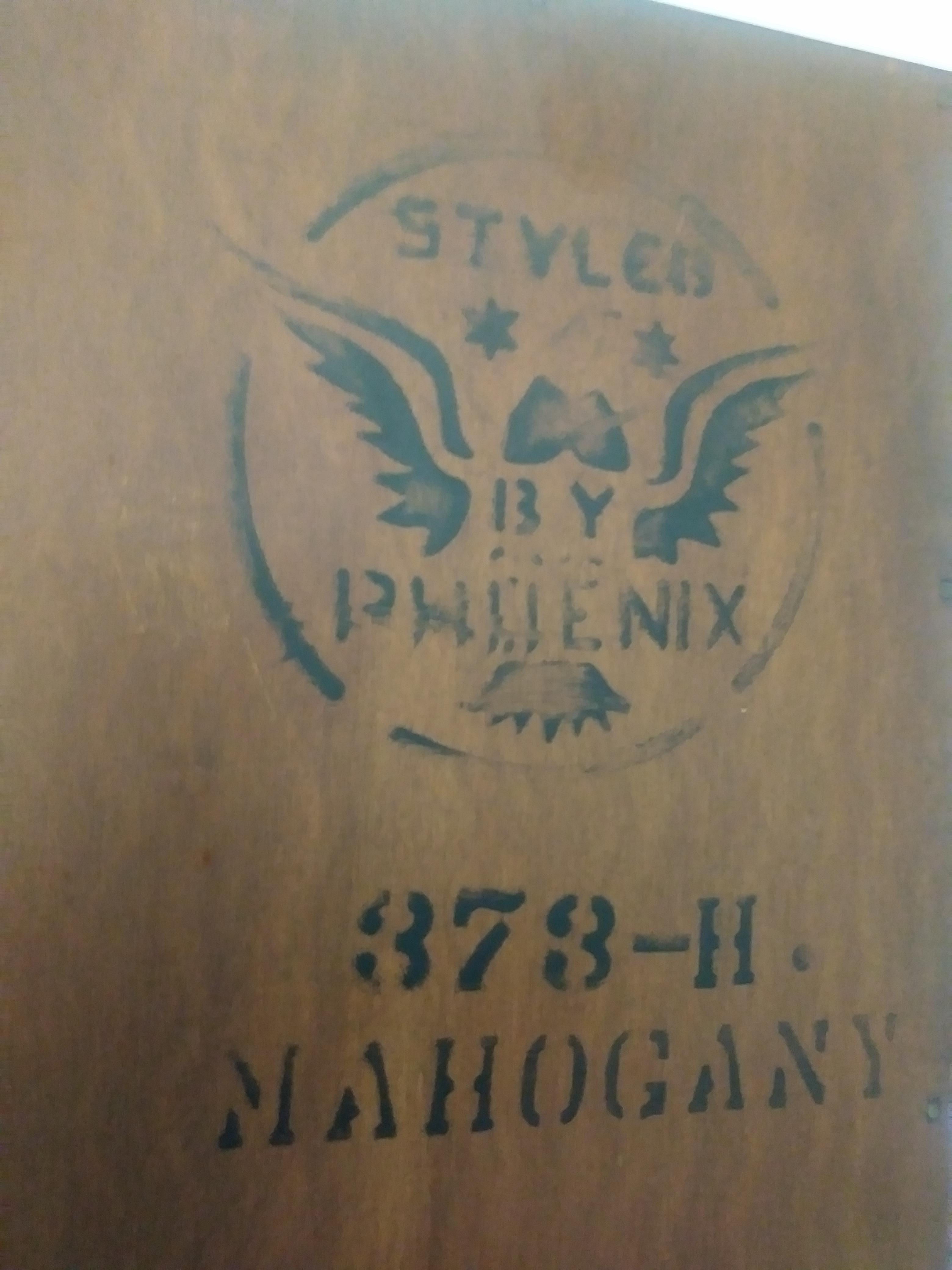 This kitchen hutch is stamped with Styled by Phoenix (inside of eagle wings) 373-H Mahogany. There are a few minor scratches. The glass for the doors is missing on both sids. Wondering what year the furniture was made and the value of this piece.