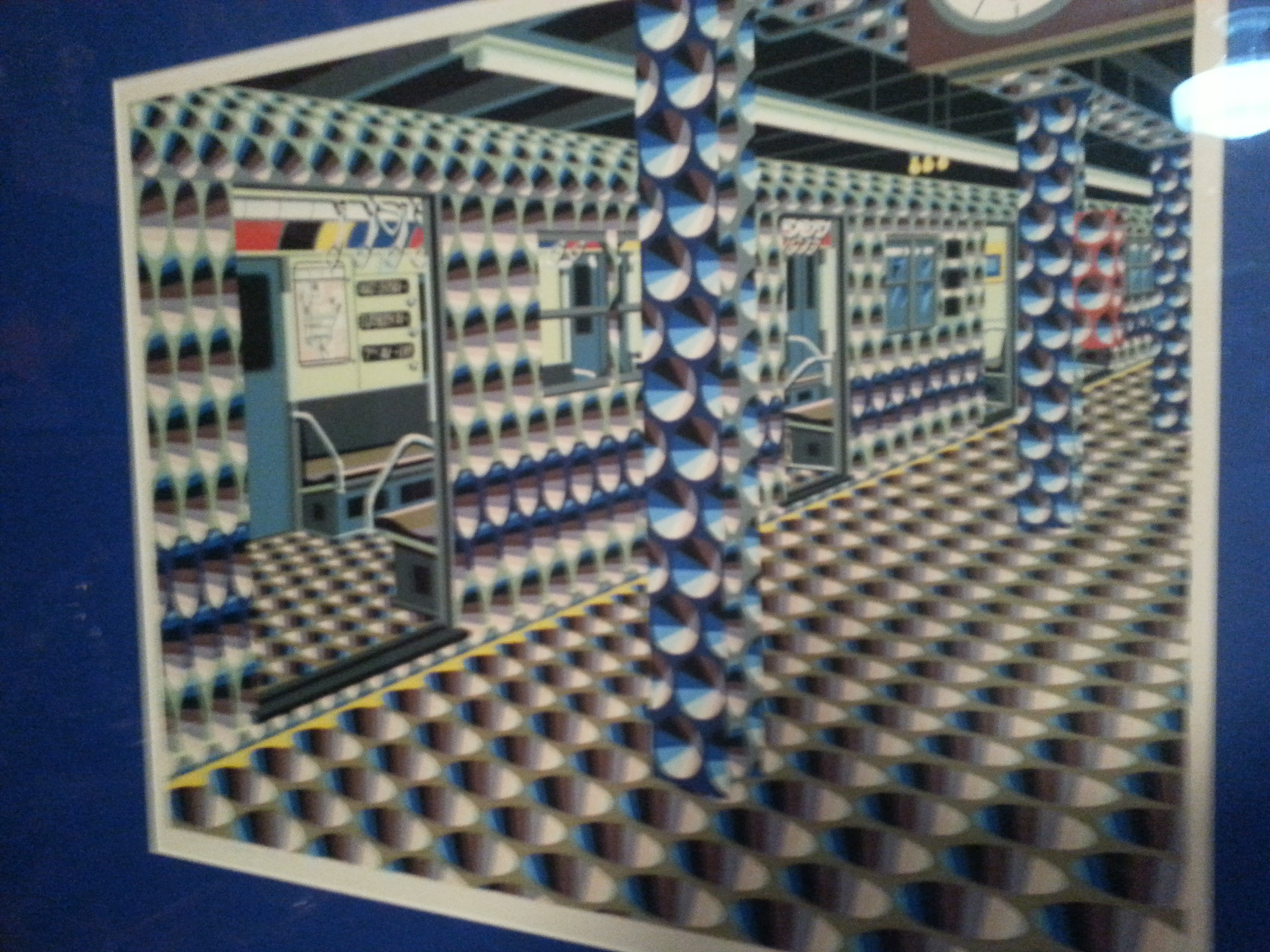 Description A painting of a subway. The artist uses dots.