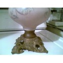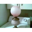 This is a brass and glass lamp. It has flowers on the bottom globe and the top is two shades of pink. It has a crack in the glass on the top globe. Pittsburgh lamp and brass is engraved in three places on the lamp. I think it is one of the earlier lamps the company made.